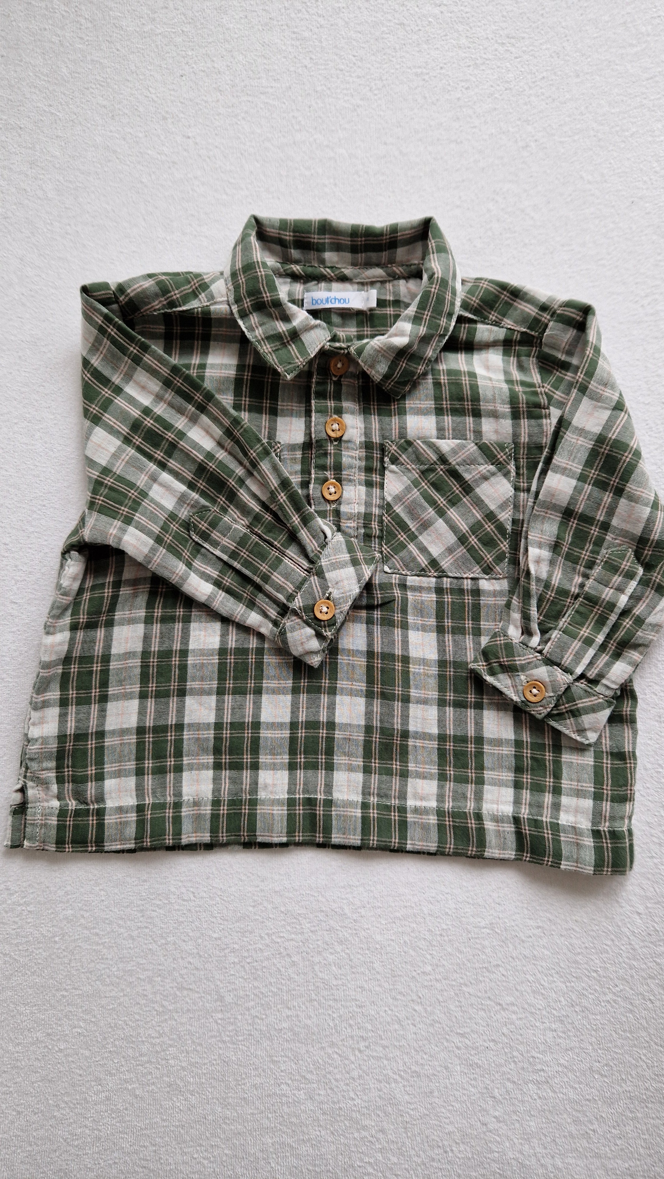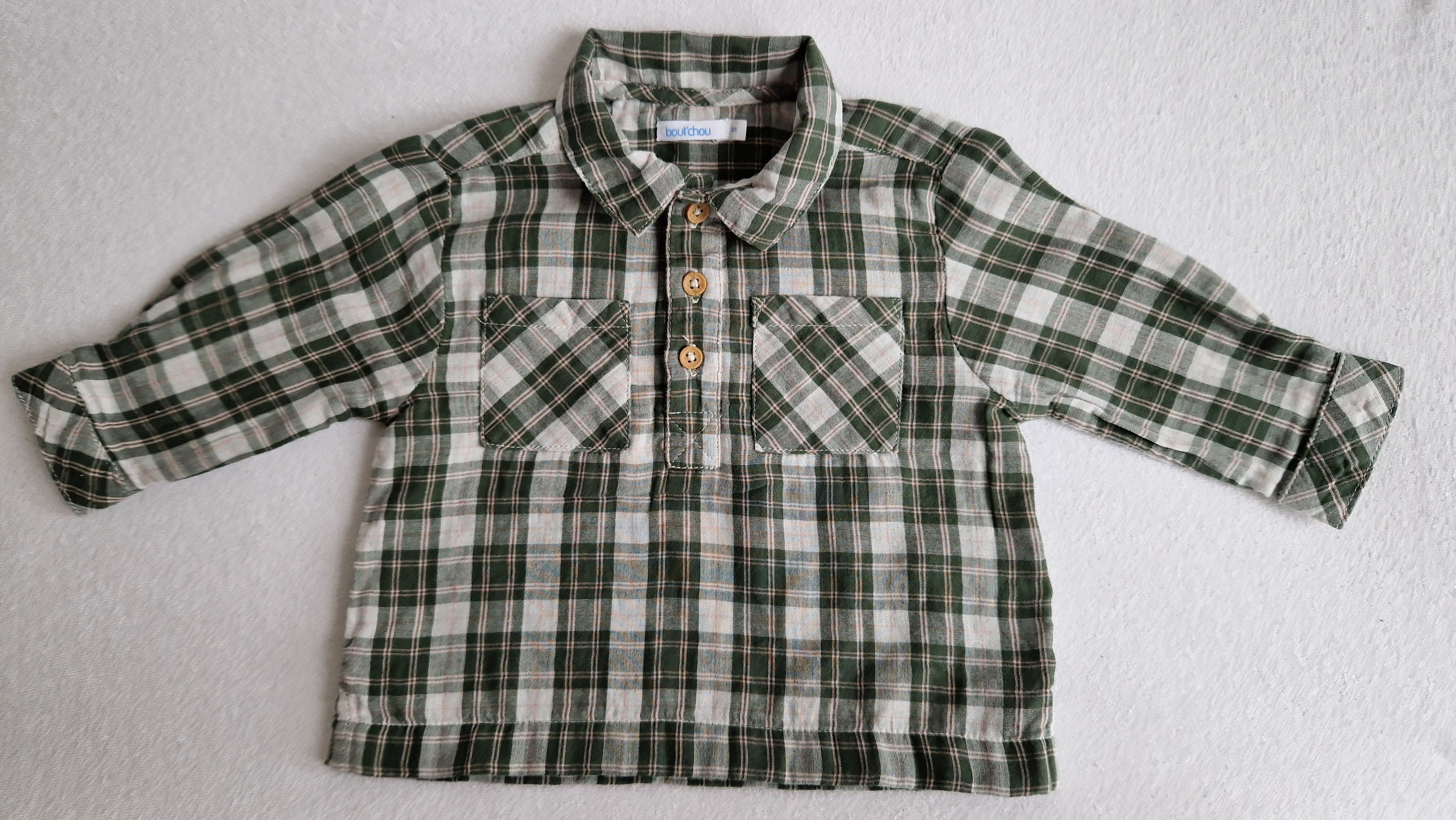 Tunique-Chemise manches longues Bout'Chou. 📏 Taille étiquette : 6 mois - 67 cm. 🌈 Motif, couleur : Vert à carreaux tartan. 🧬 Matière :... En savoir plus