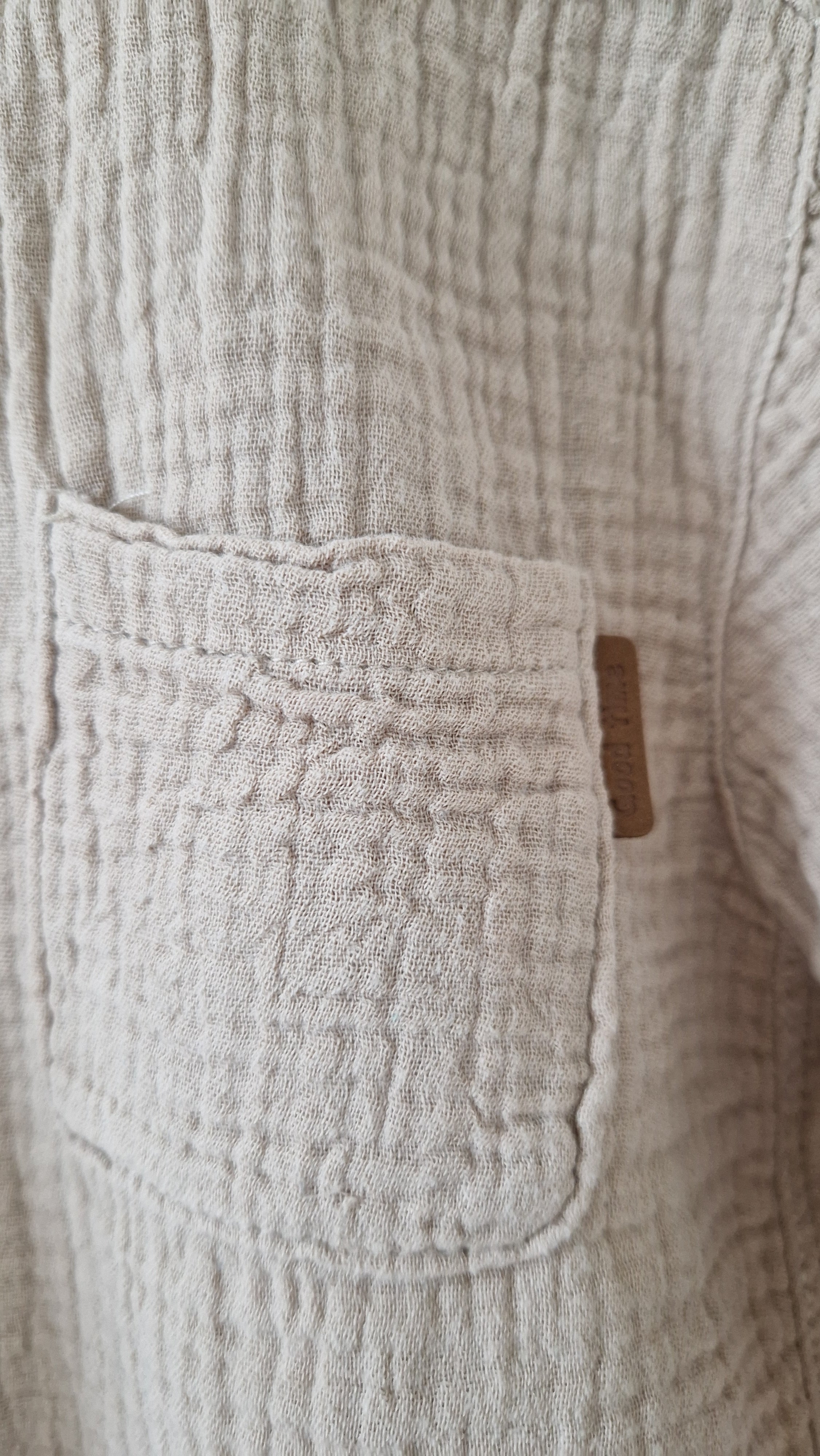 Chemise manches longues Prénatal. 📏 Taille étiquette : 92 cm. 🌈 Motif, couleur : Beige mousseline. 🧬 Matière : 100% Coton Organic. 🔓 Ouverture : Par... En savoir plus