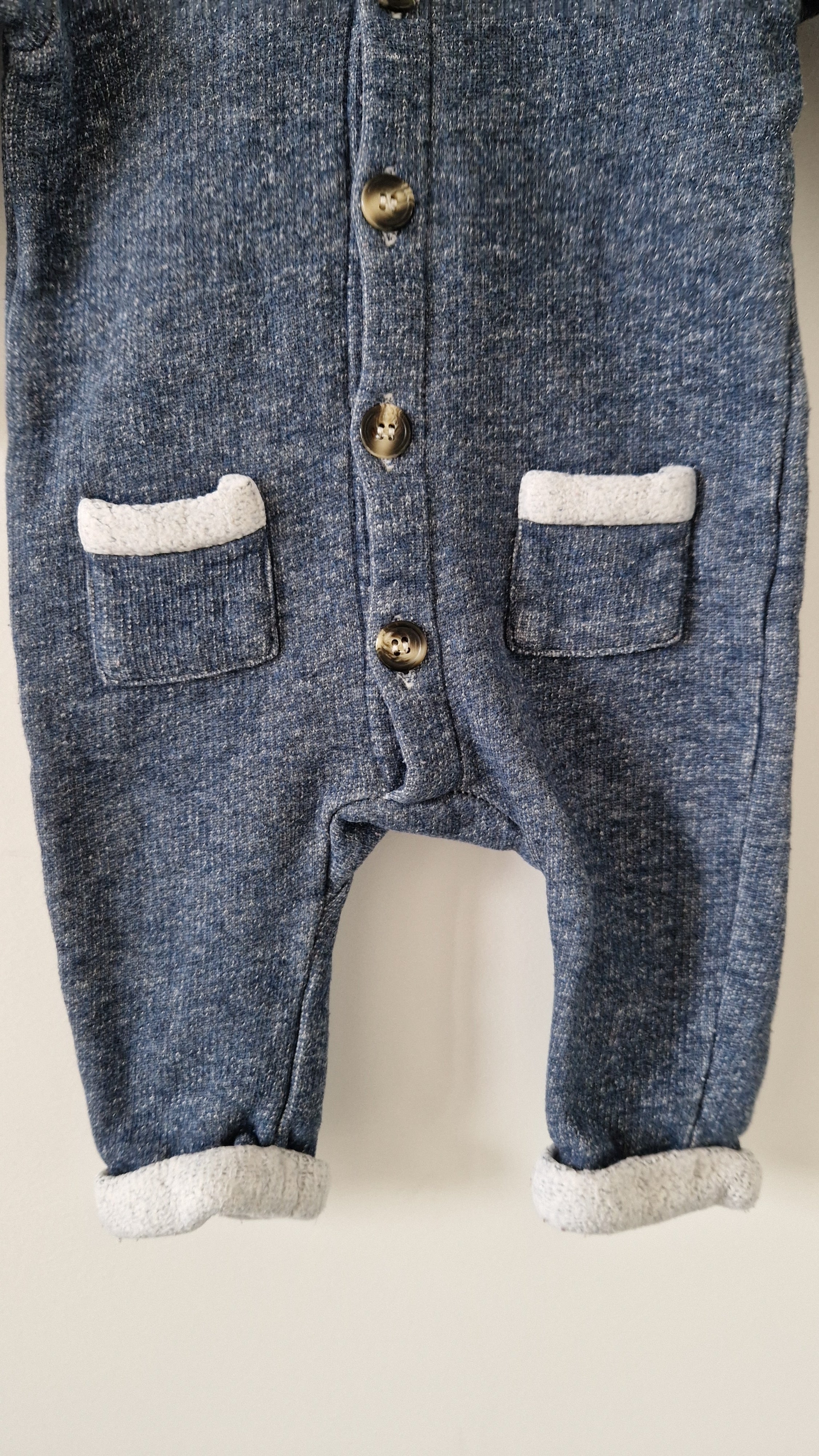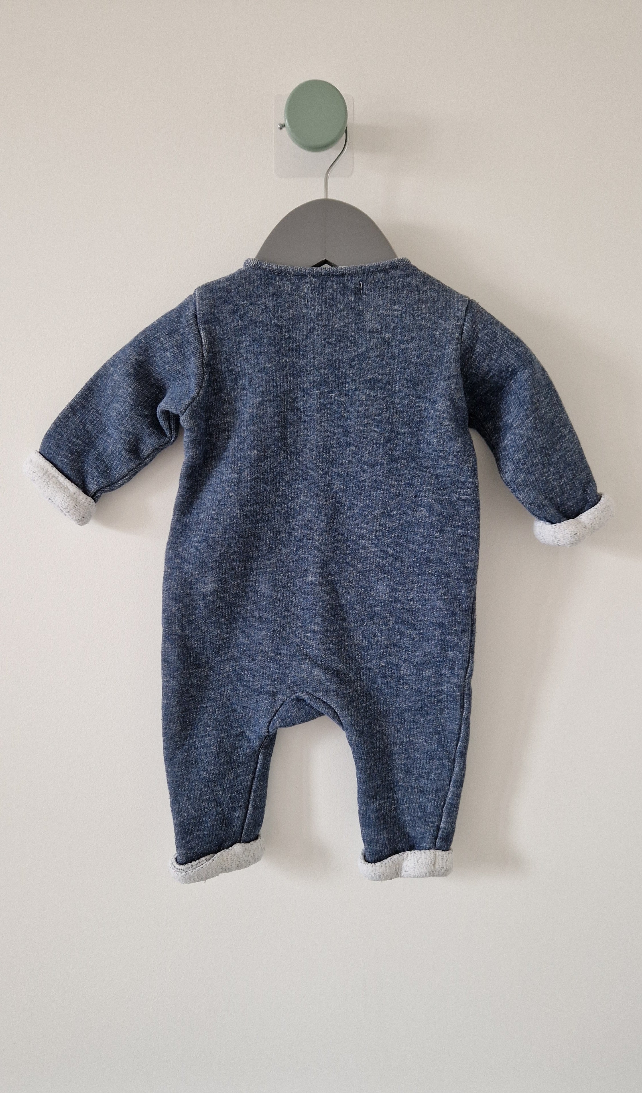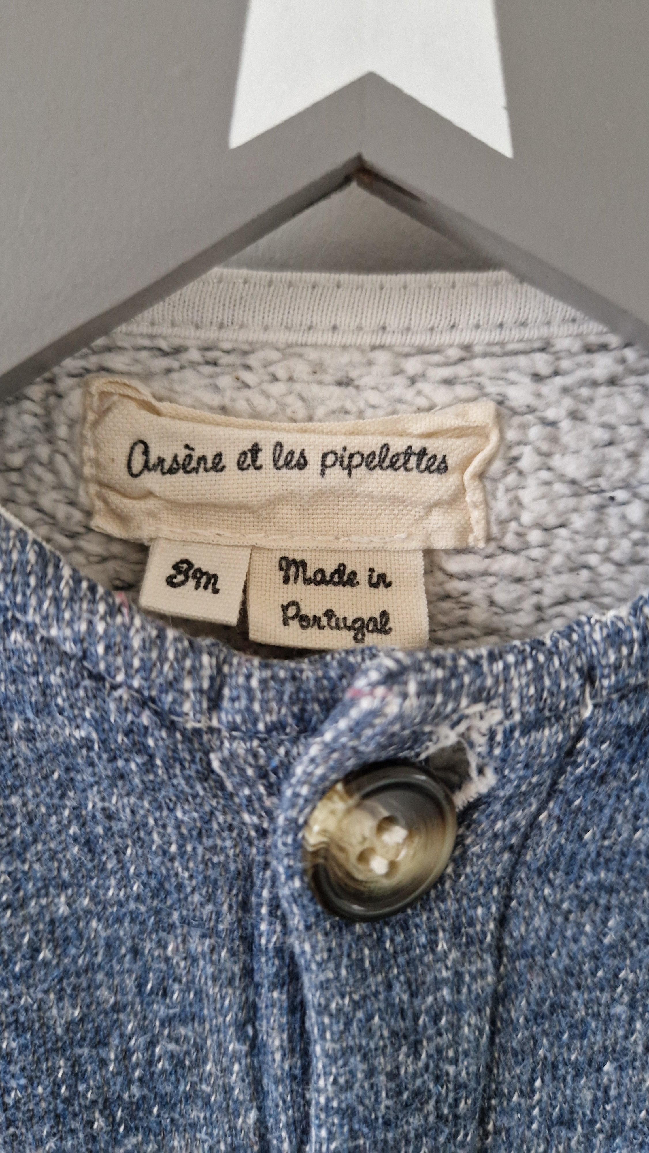 Combinaison Arsène et les pipelettes. 📏 Taille étiquette : 3 mois. 🌈 Motif, couleur : Bleu/gris chiné laine. 🧬 Matière : 100% Coton. 🔓 Ouverture : Par... En savoir plus