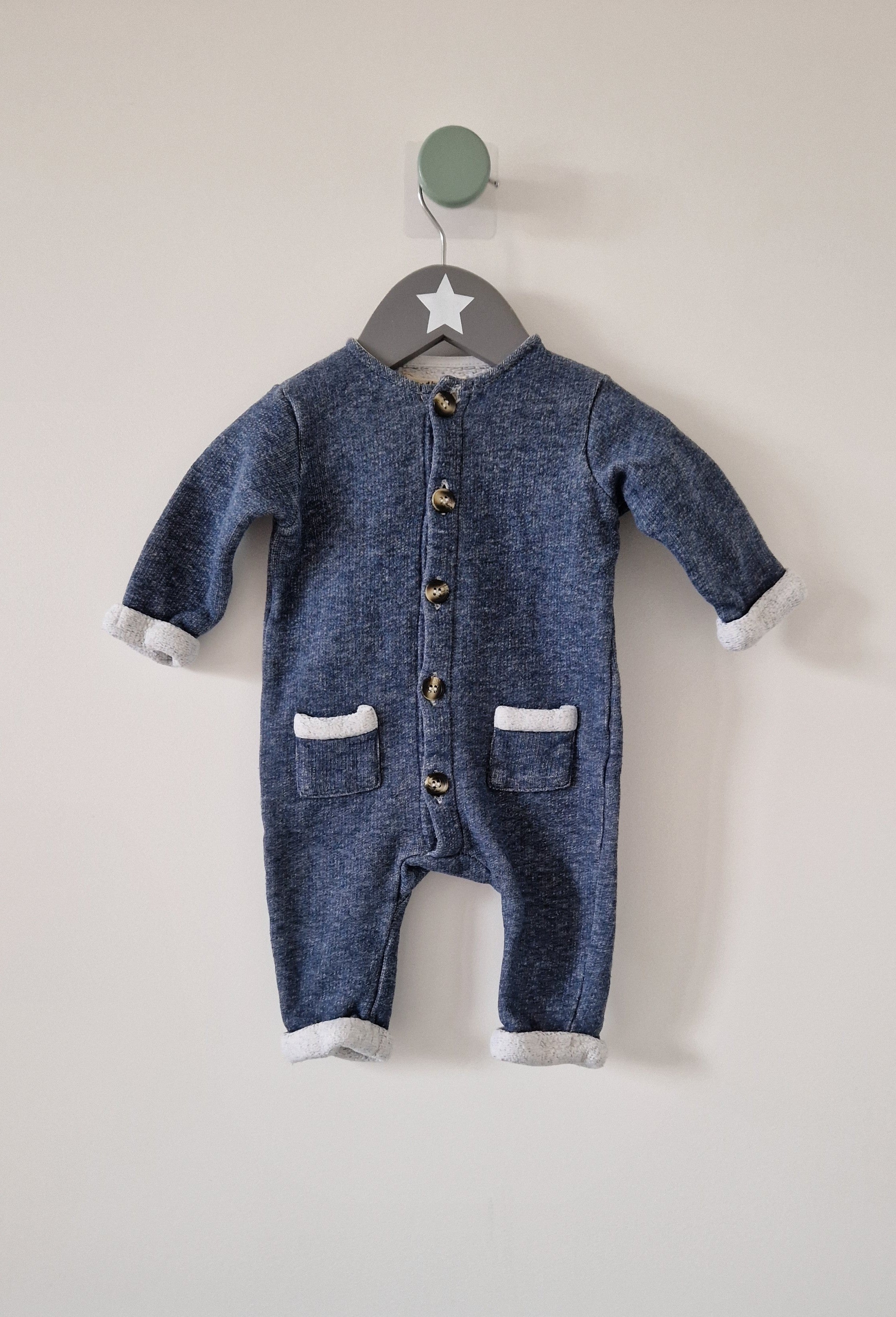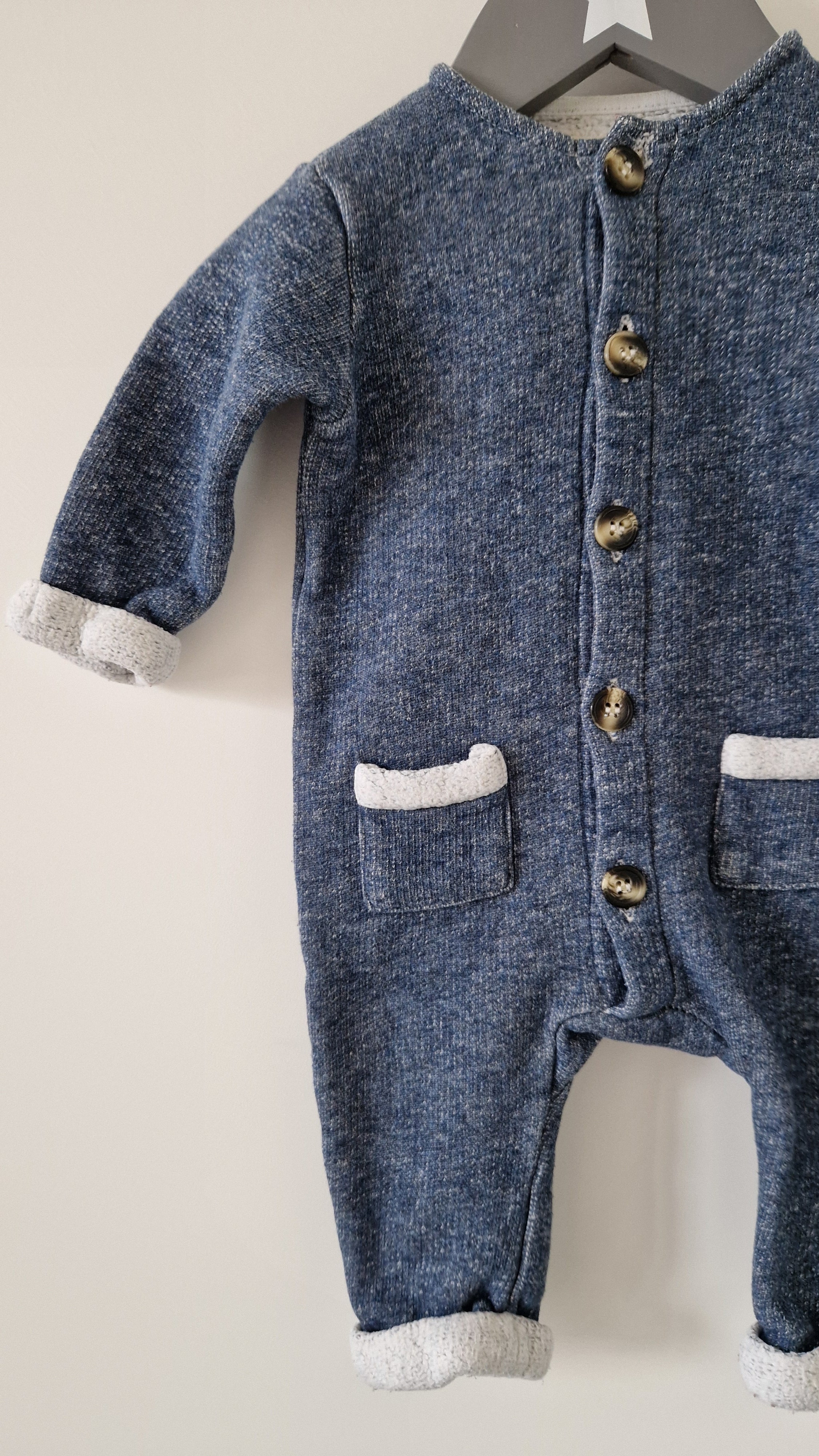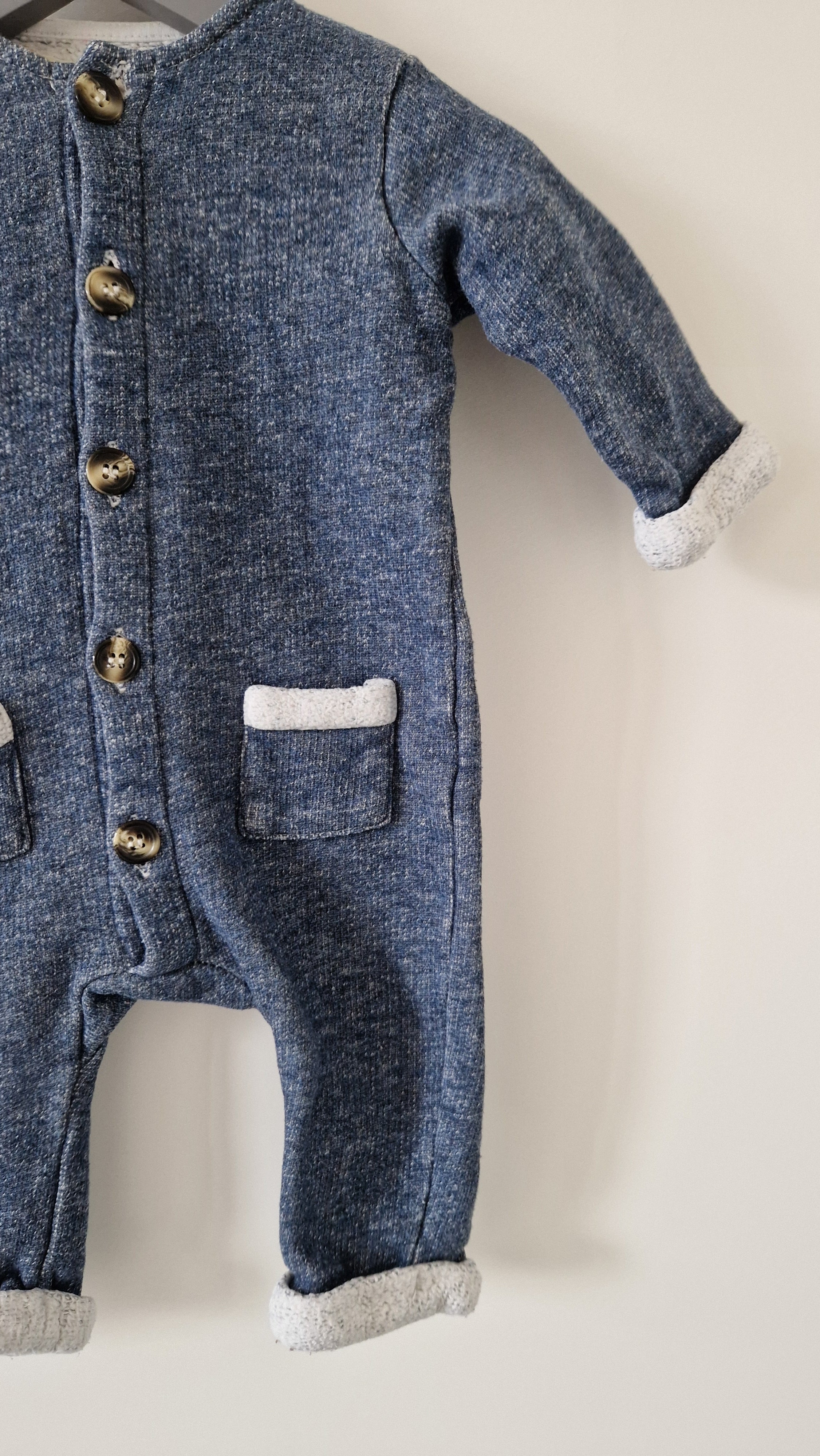 Combinaison Arsène et les pipelettes. 📏 Taille étiquette : 3 mois. 🌈 Motif, couleur : Bleu/gris chiné laine. 🧬 Matière : 100% Coton. 🔓 Ouverture : Par... En savoir plus