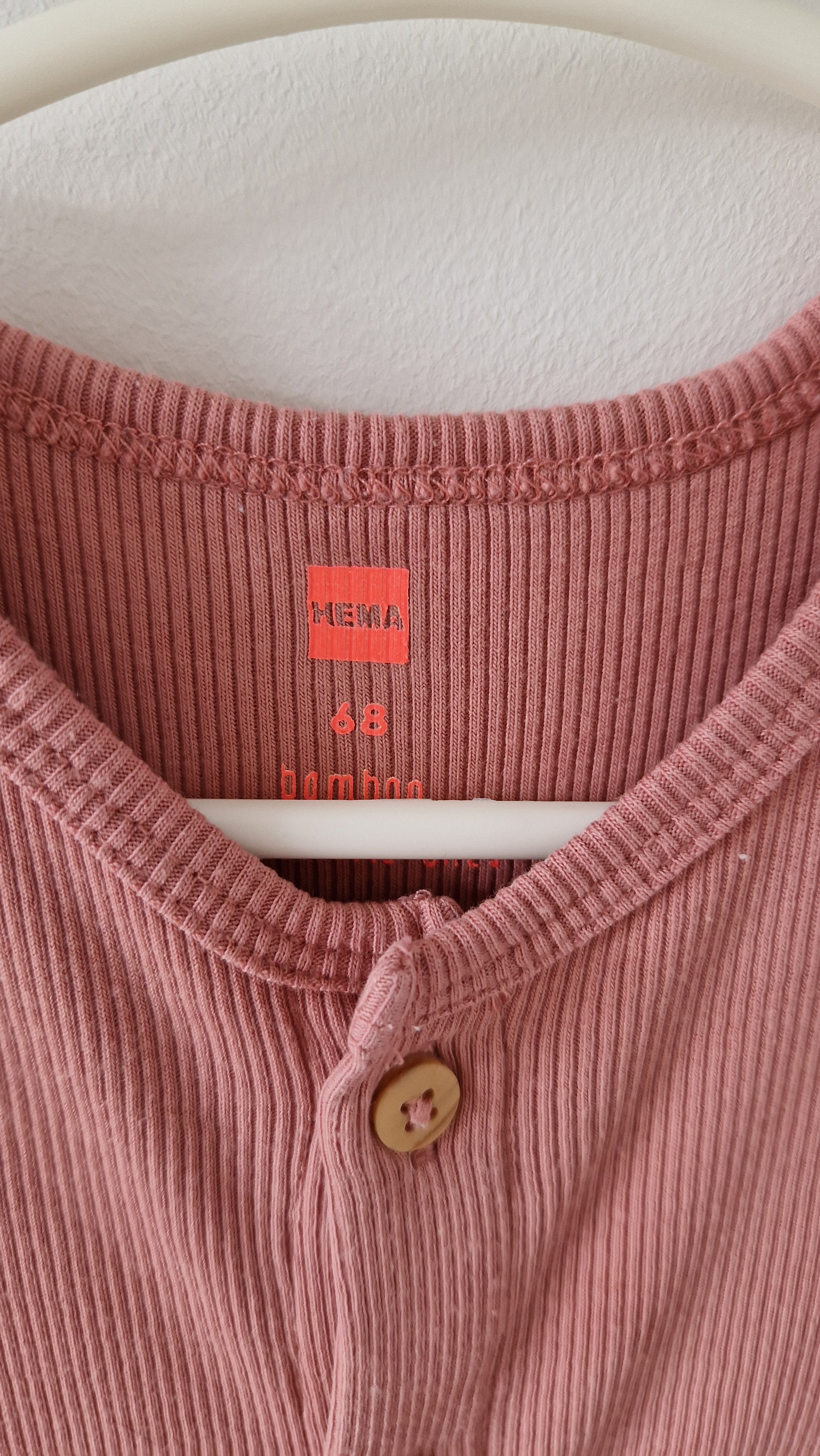 Combinaison Hema. 📏 Taille étiquette : 68 cm. 🌈 Motif, couleur : Vieux rose / Corail. 🧬 Matière : 47,5% Viscose / 47,5% Coton /... En savoir plus