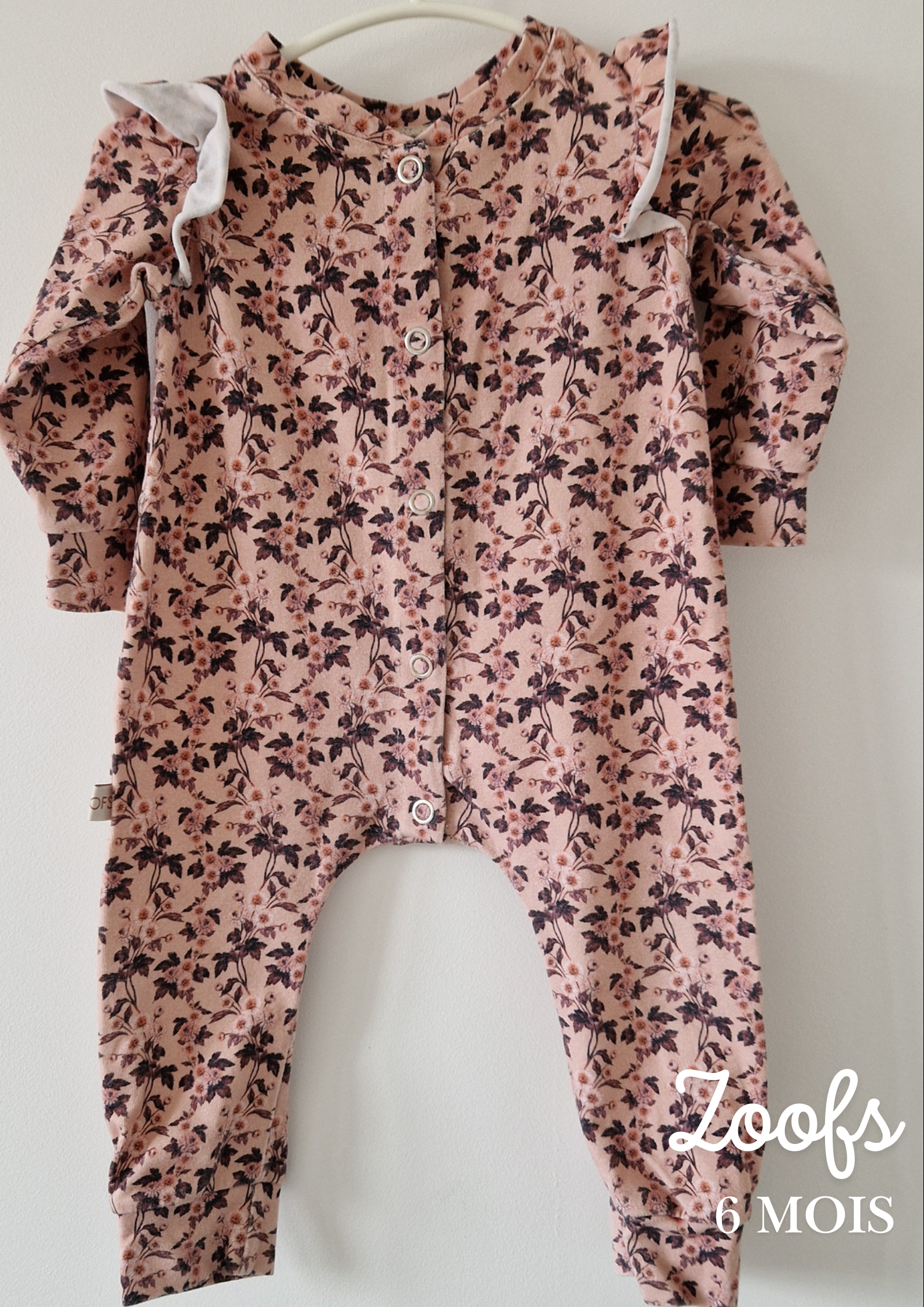 Combinaison Zoofs. 📏 Taille étiquette : Pas d'étiquette, mais taille 6 mois. 🌈 Motif, couleur : Rose vieux fleurie. 🧬 Matière : Pas d'étiquette. 🔓... En savoir plus