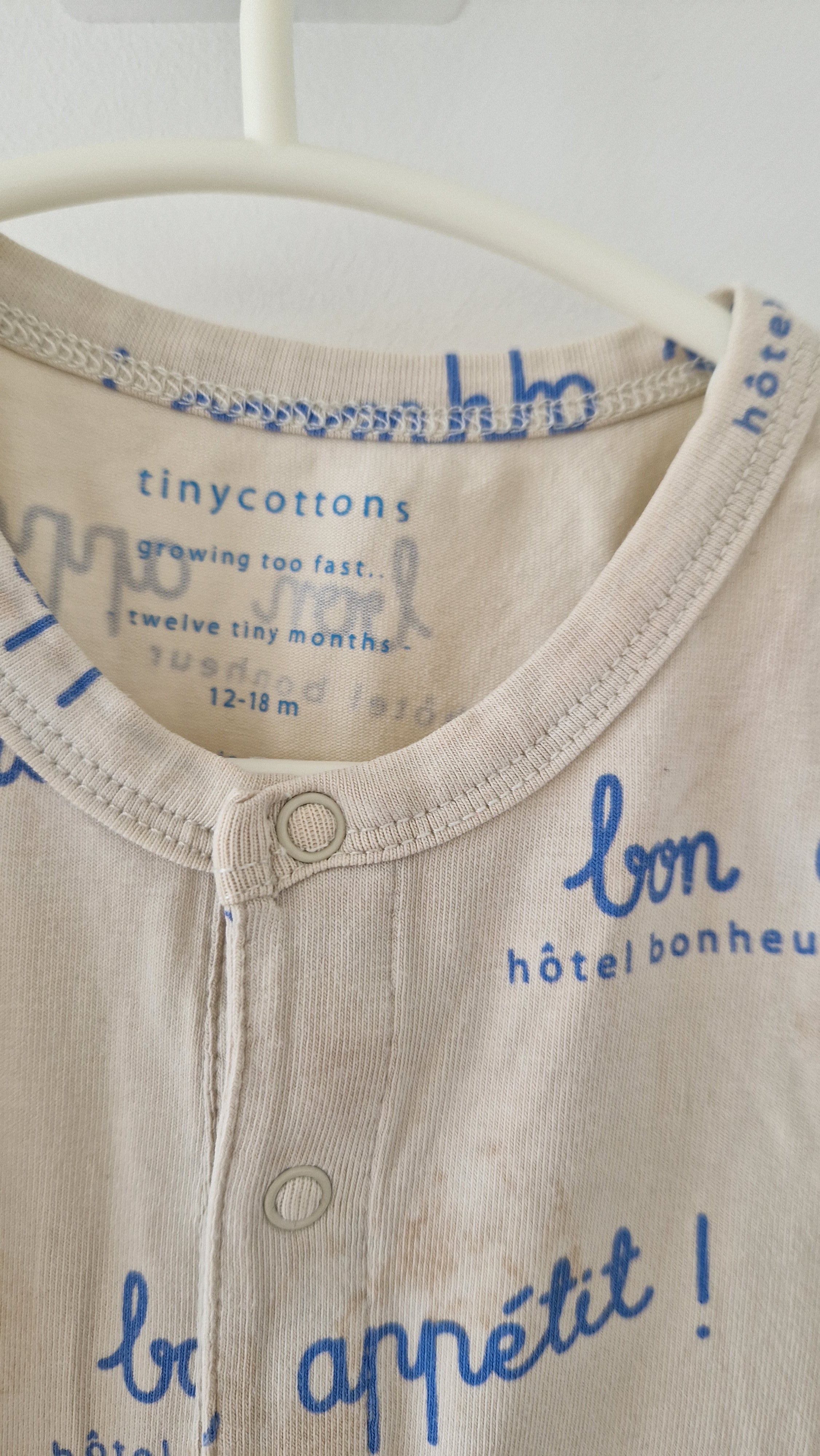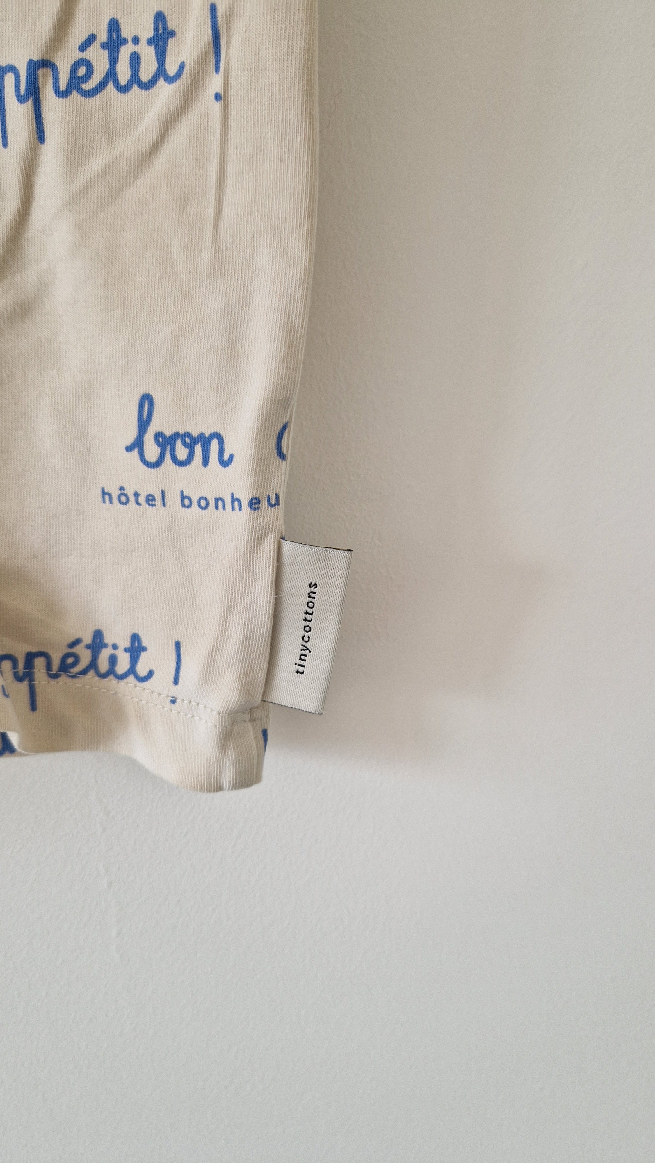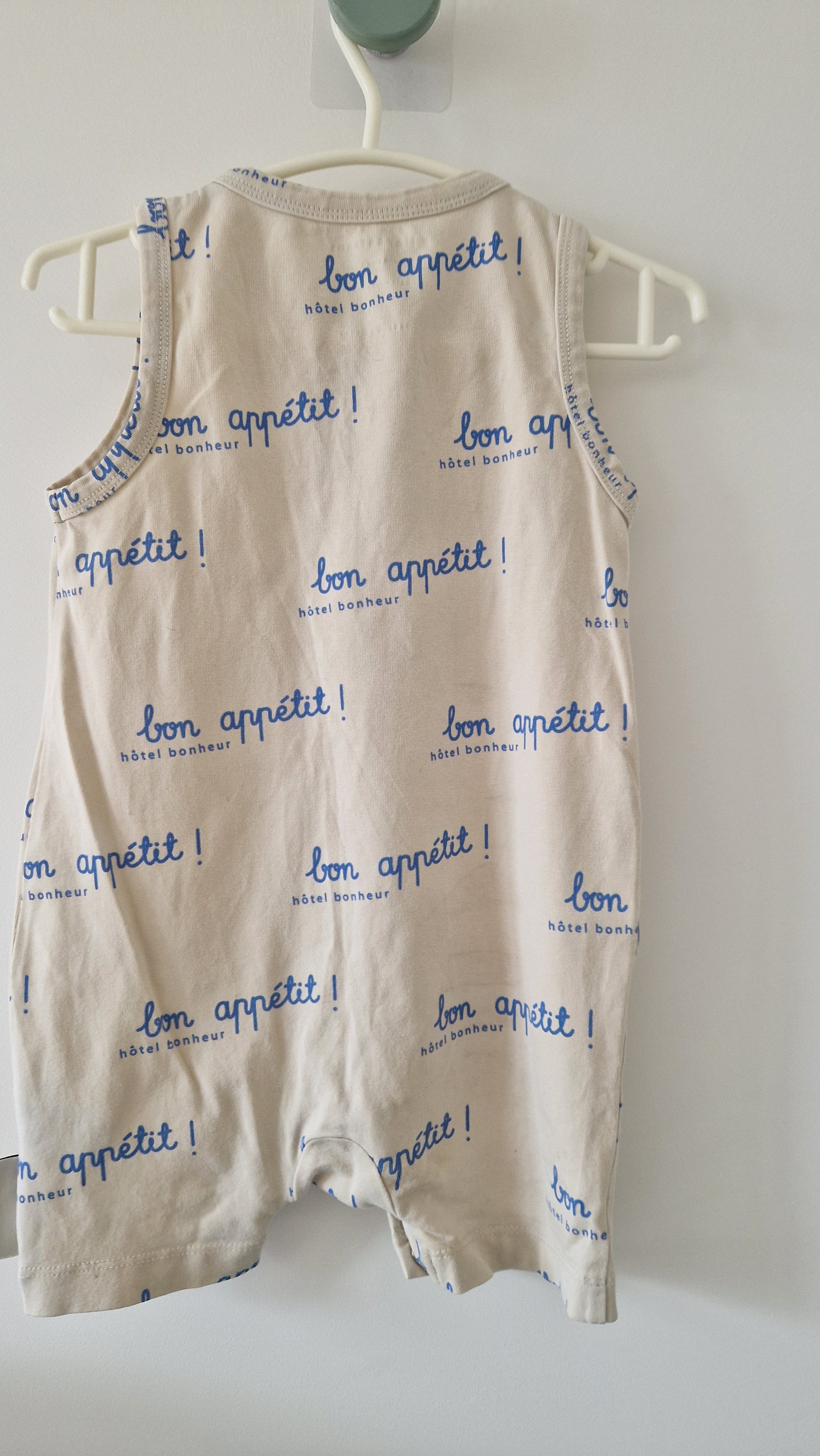 Combishort Tinycottons 📏 Taille étiquette : 12/18M 🌈 Motif, couleur : Sans manches, beige, inscrit "Bon appétit" 🧬 Matière : 90% Coton /... En savoir plus