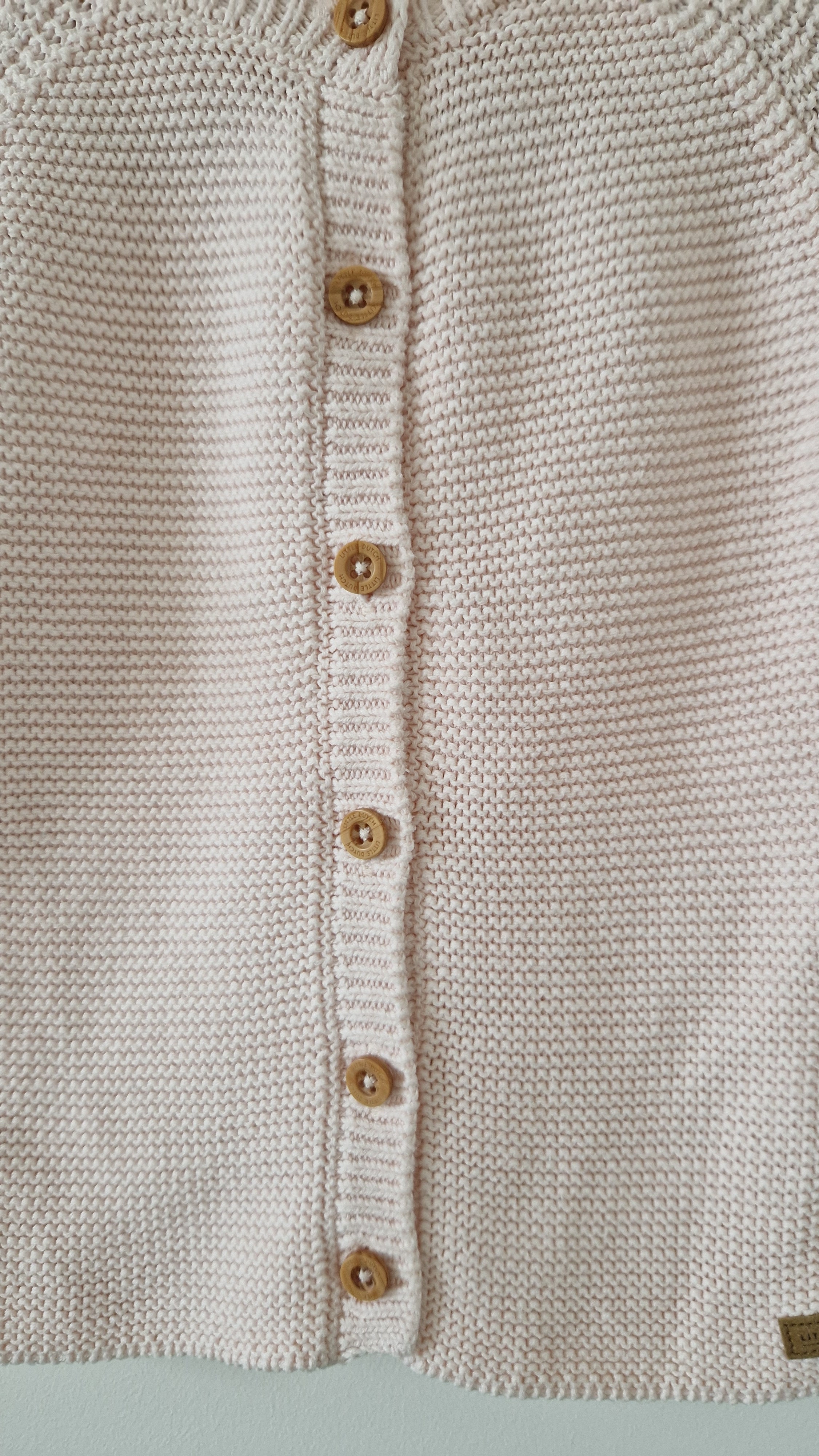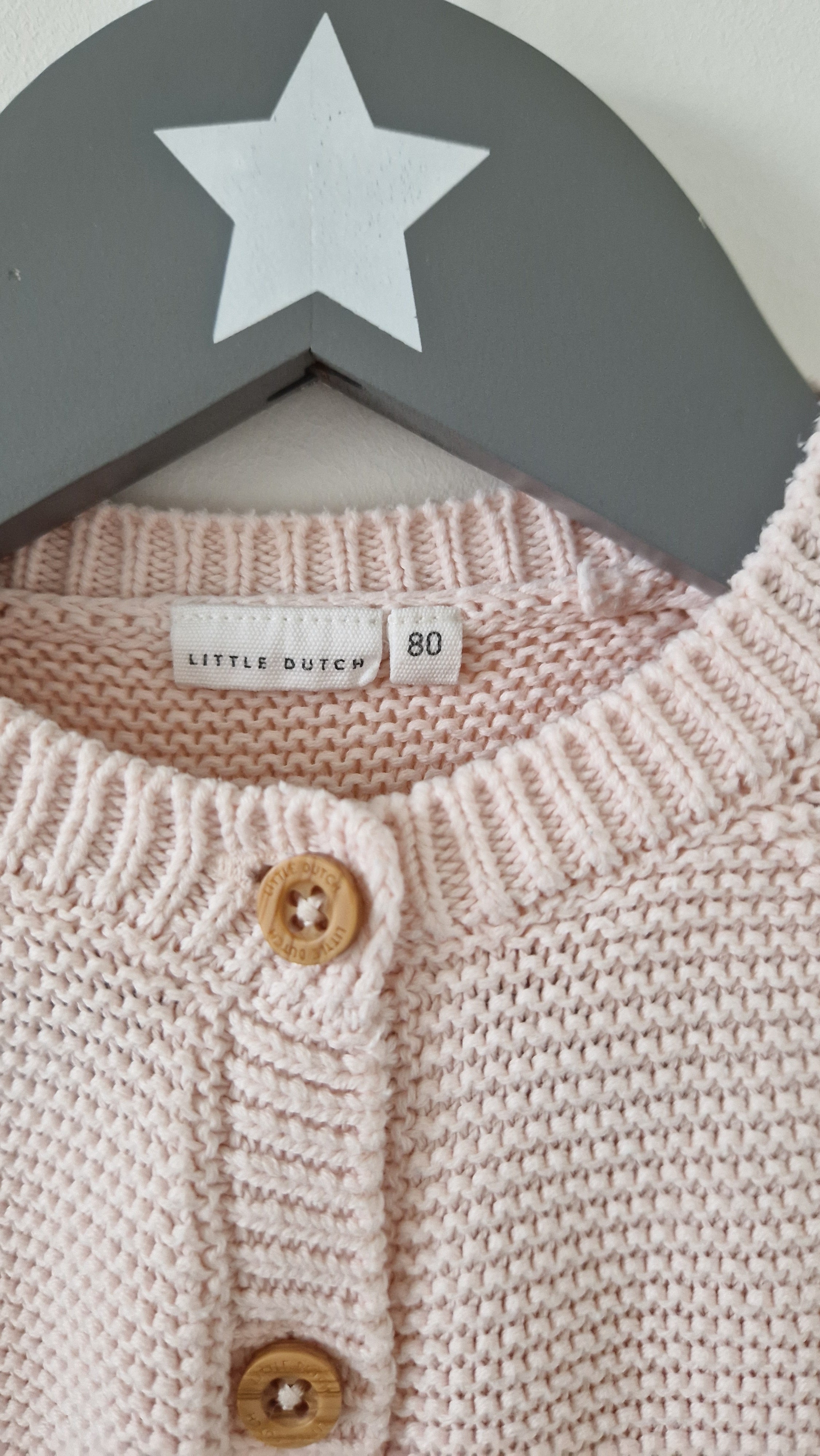 Gilet Cardigan Little Dutch. 📏 Taille étiquette : 80 cm. 🌈 Motif, couleur : Rose en maille. 🧬 Matière : 55% Coton / 45% Acrylique.... En savoir plus