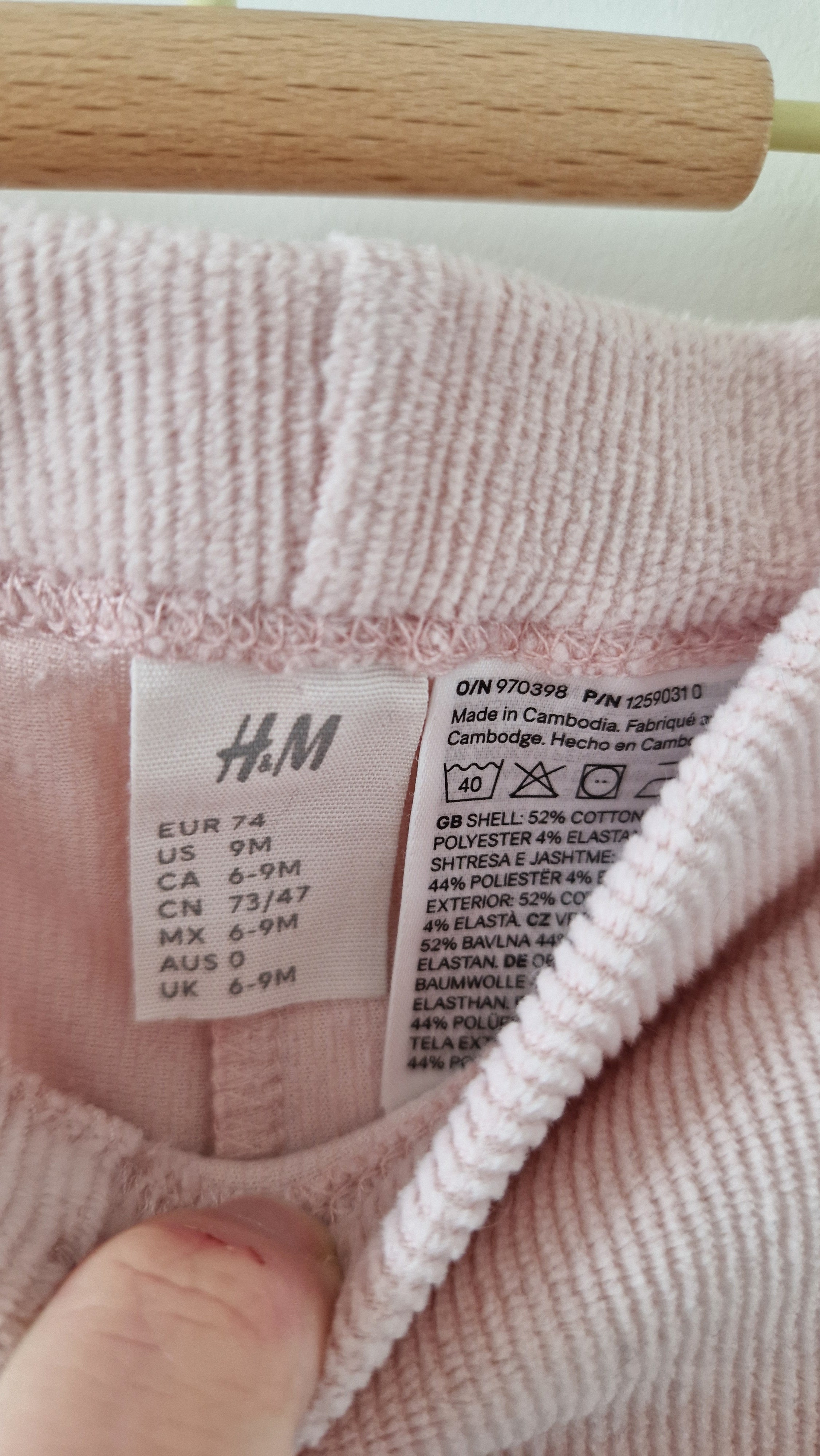 Pantalon Legging H&M. 📏 Taille étiquette : 9 mois - 74 cm. 🌈 Motif, couleur : Legging rose velours côtelé. 🧬 Matière : 52%... En savoir plus