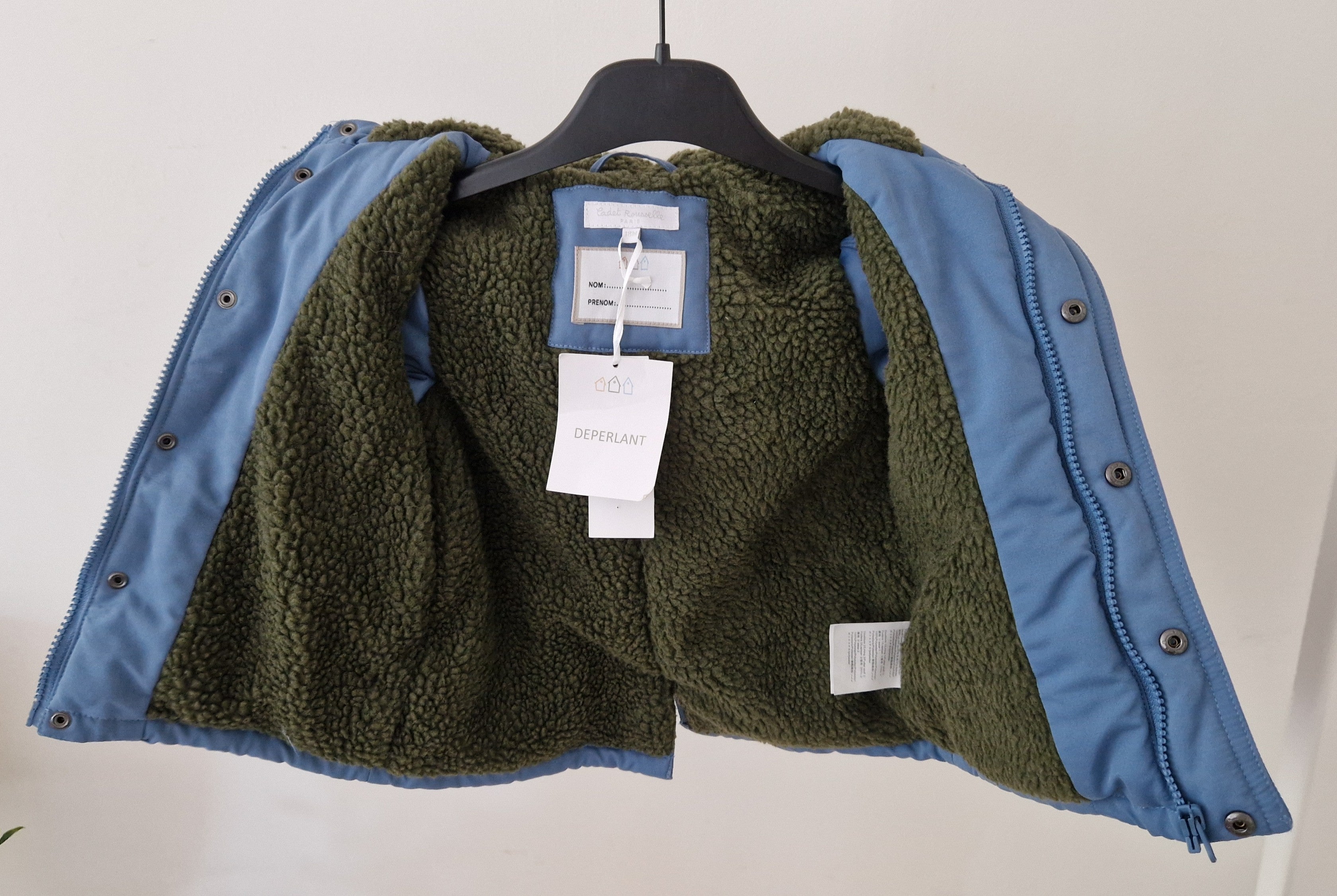 Parka Cadet Rousselle 📏 Taille étiquette : 18 mois 🌈 Motif, couleur : Bleu clair, contour et détail marron 🧬Matière... En savoir plus