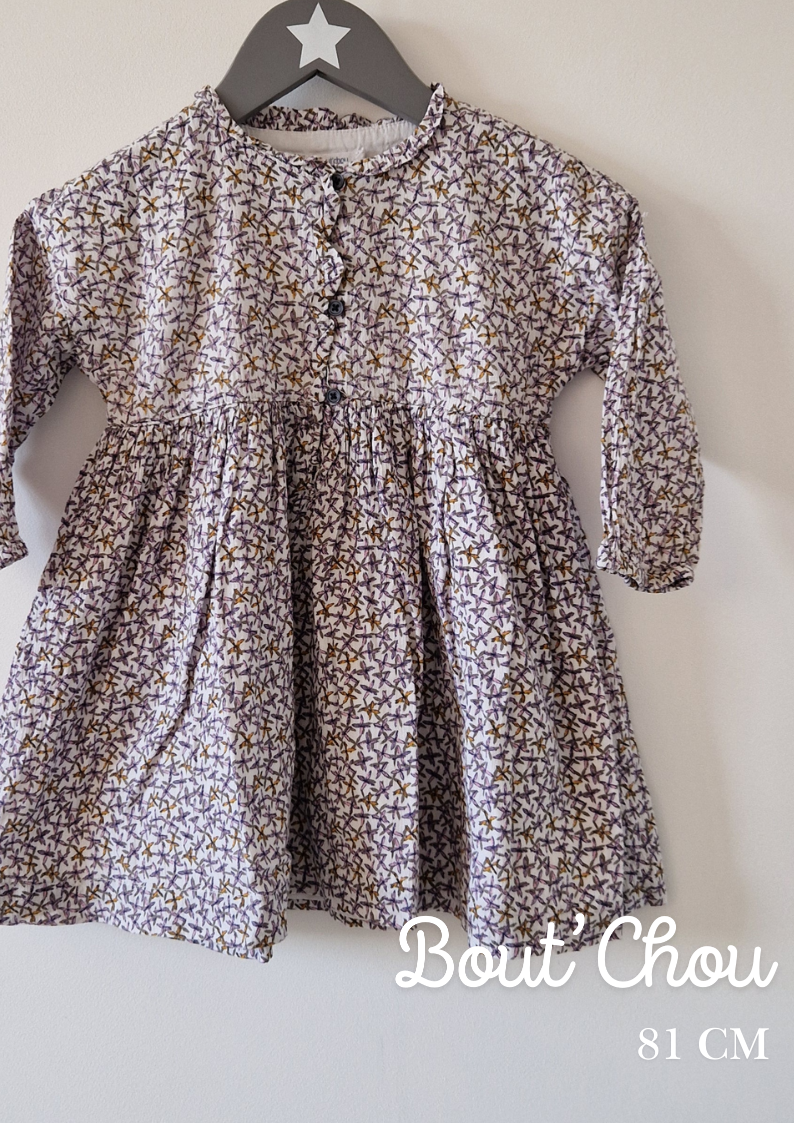 Robe courte, manches longues Bout'Chou. 📏 Taille étiquette : 18 mois - 81 cm. 🌈 Motif, couleur : Blanche fleur lila... En savoir plus