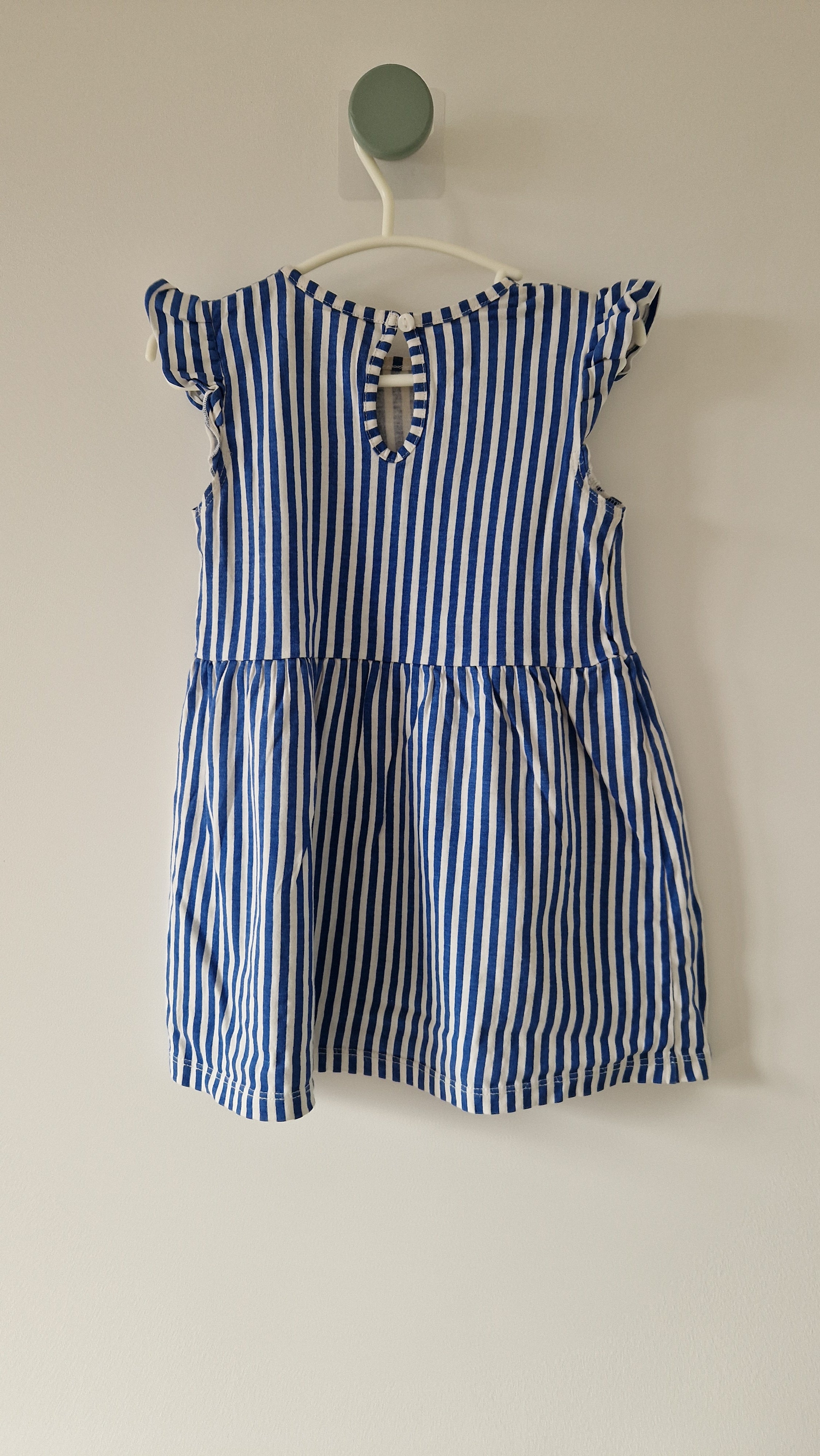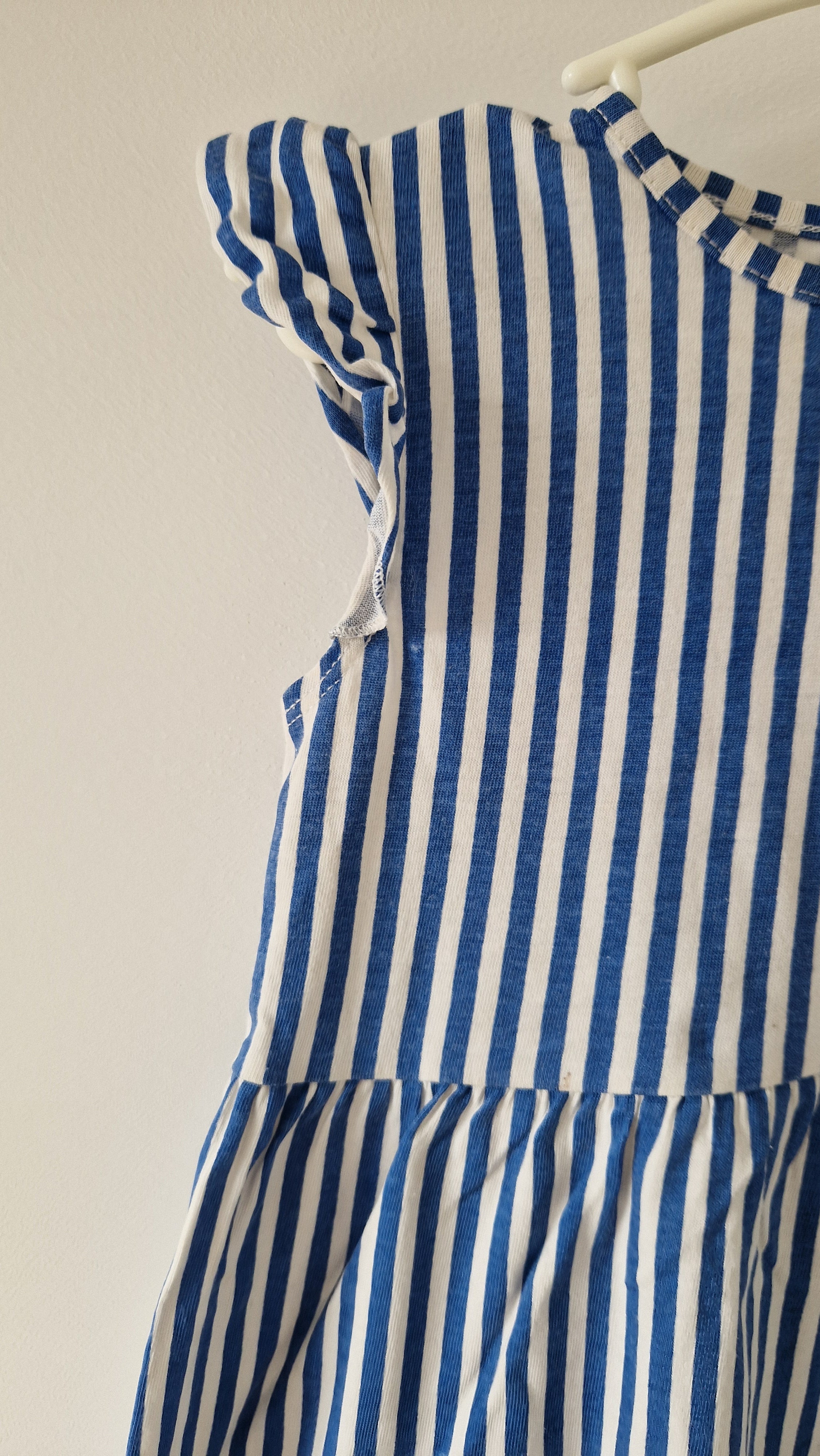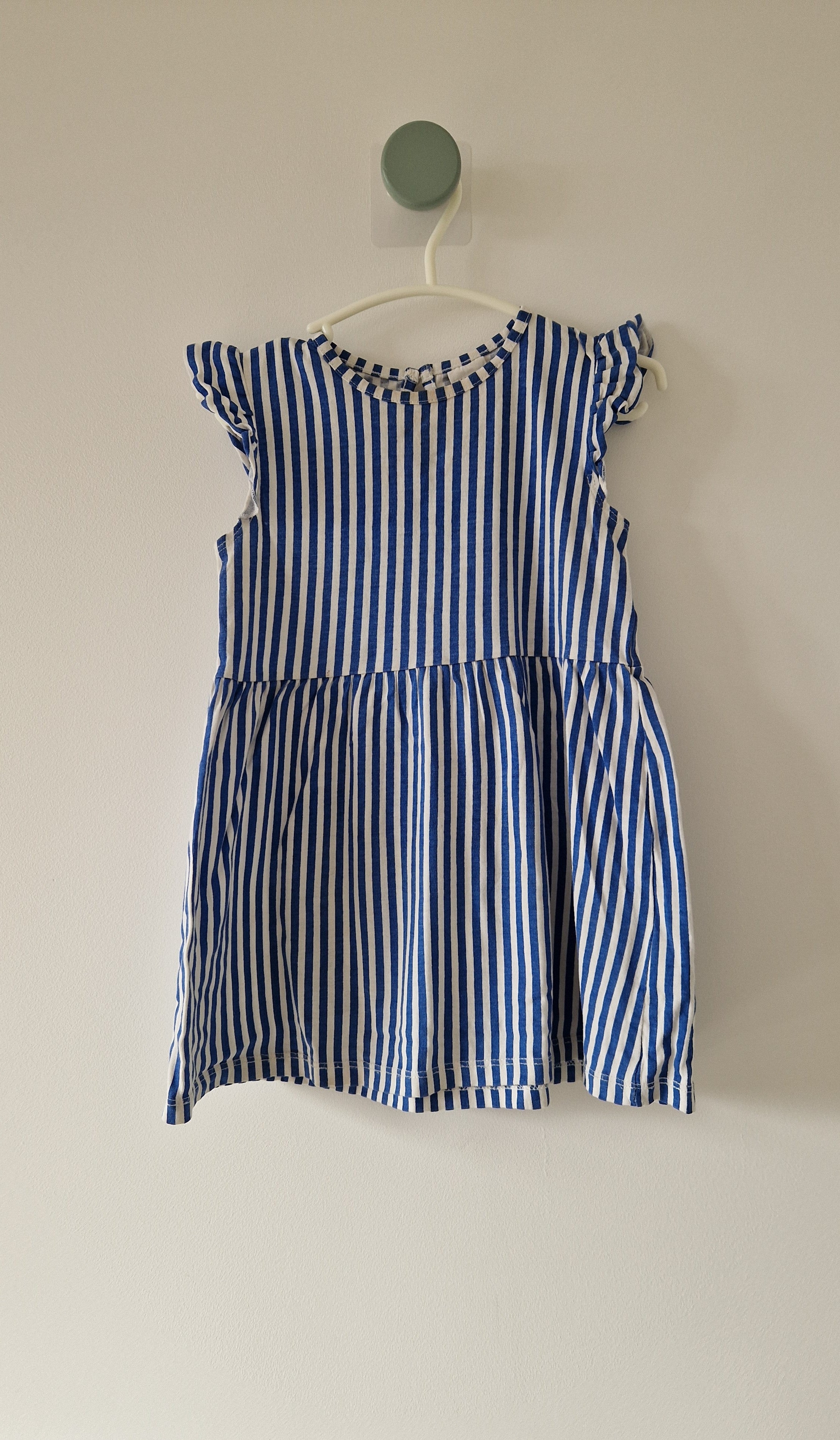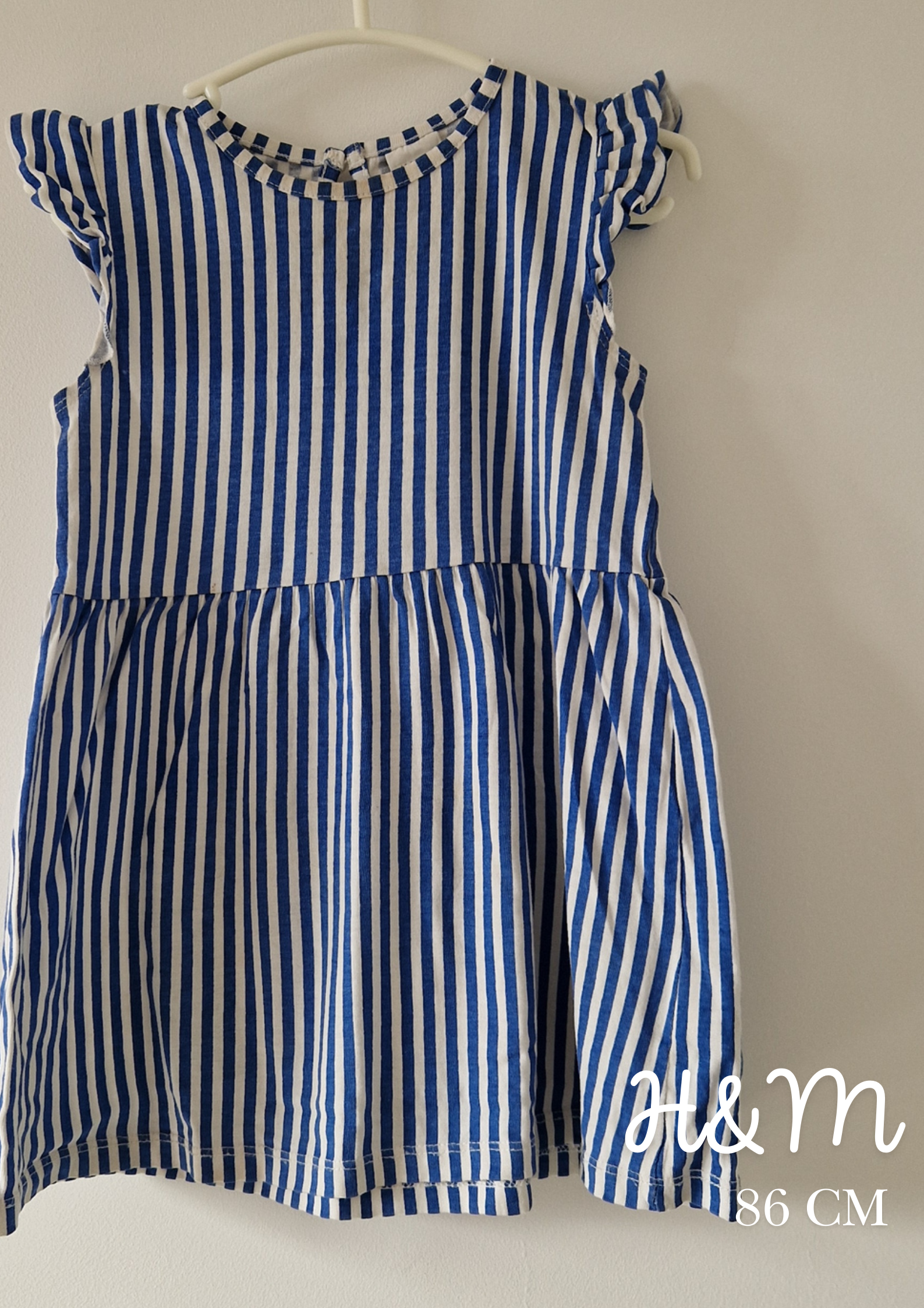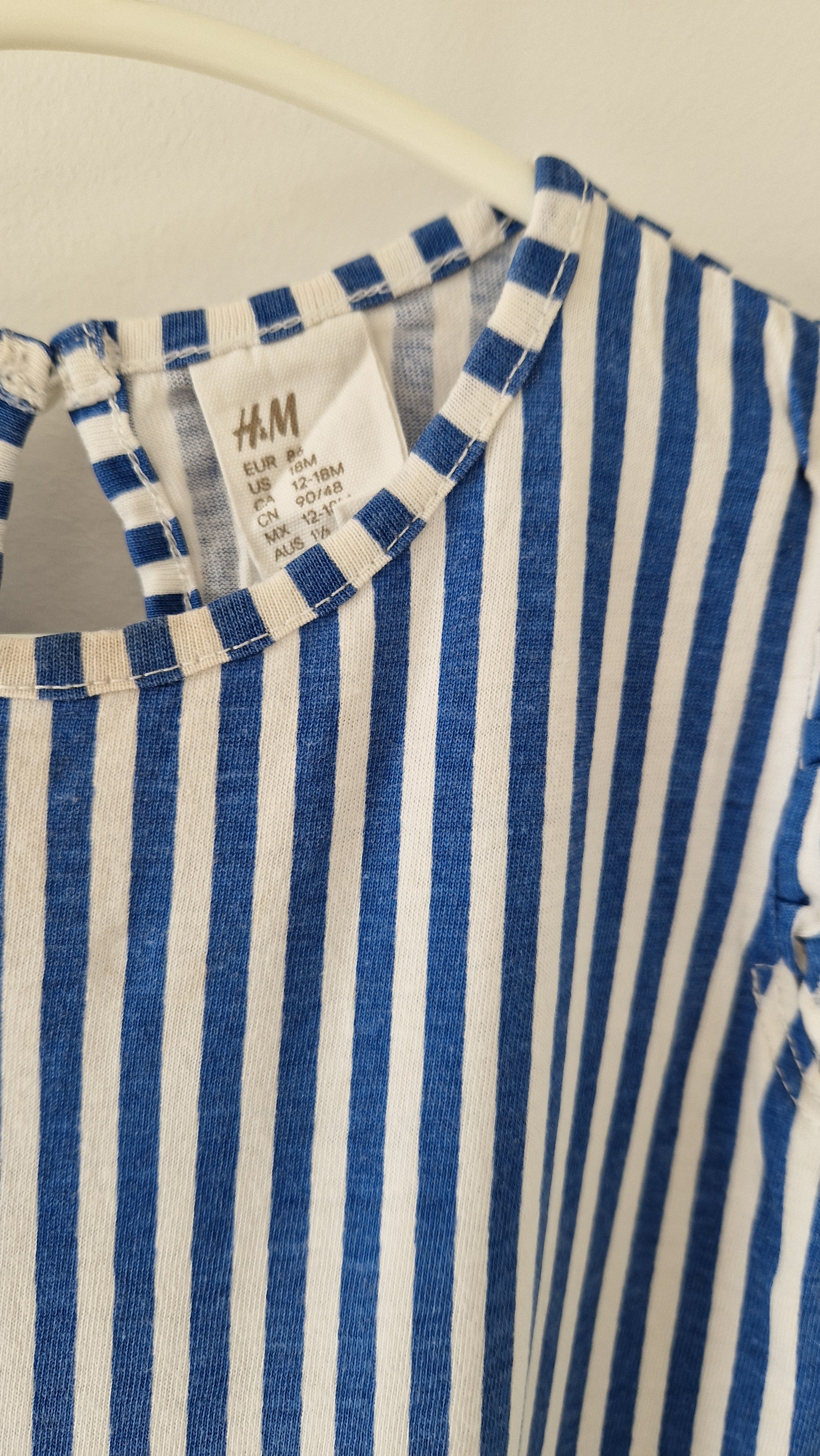 Robe courte sans manches H&M. 📏 Taille étiquette : 18 mois - 86 cm. 🌈 Motif, couleur : Rayé blanc et bleu.... En savoir plus
