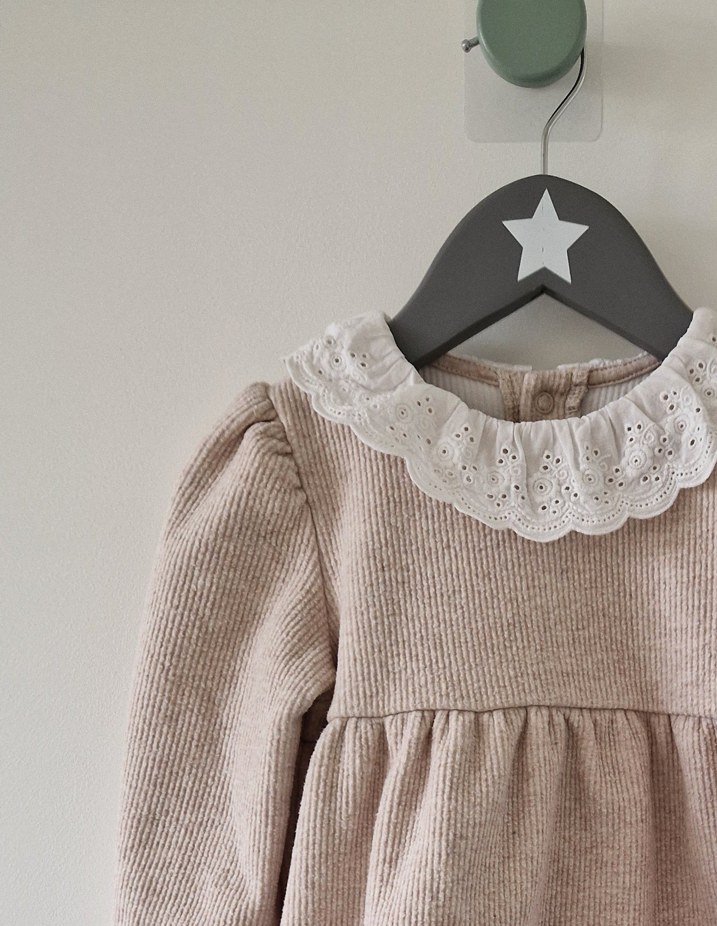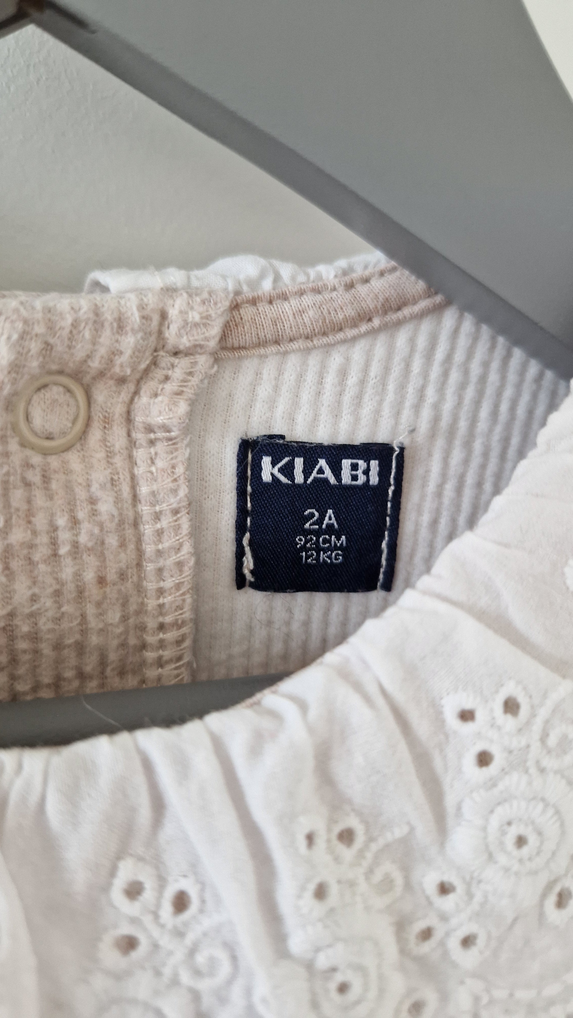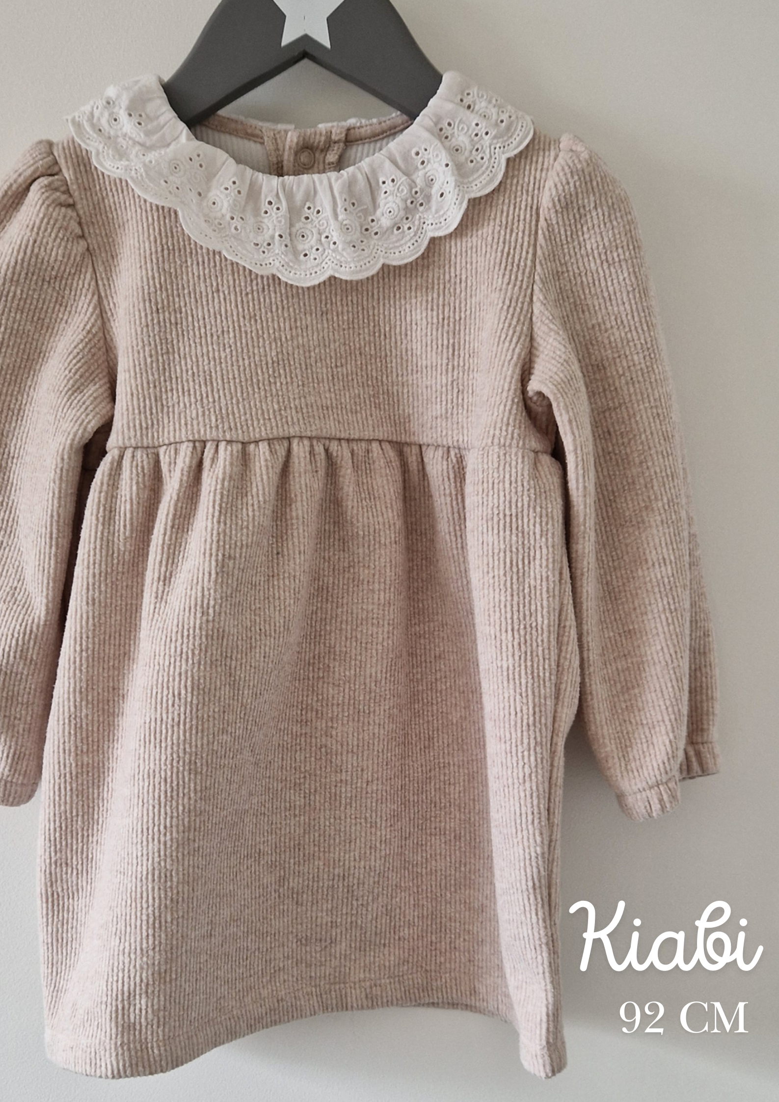 Robe courte Kiabi. 📏 Taille étiquette : 2 ans - 92 cm. 🌈 Motif, couleur : Beige avec col dentelé. 🧬 Matière : 52%... En savoir plus