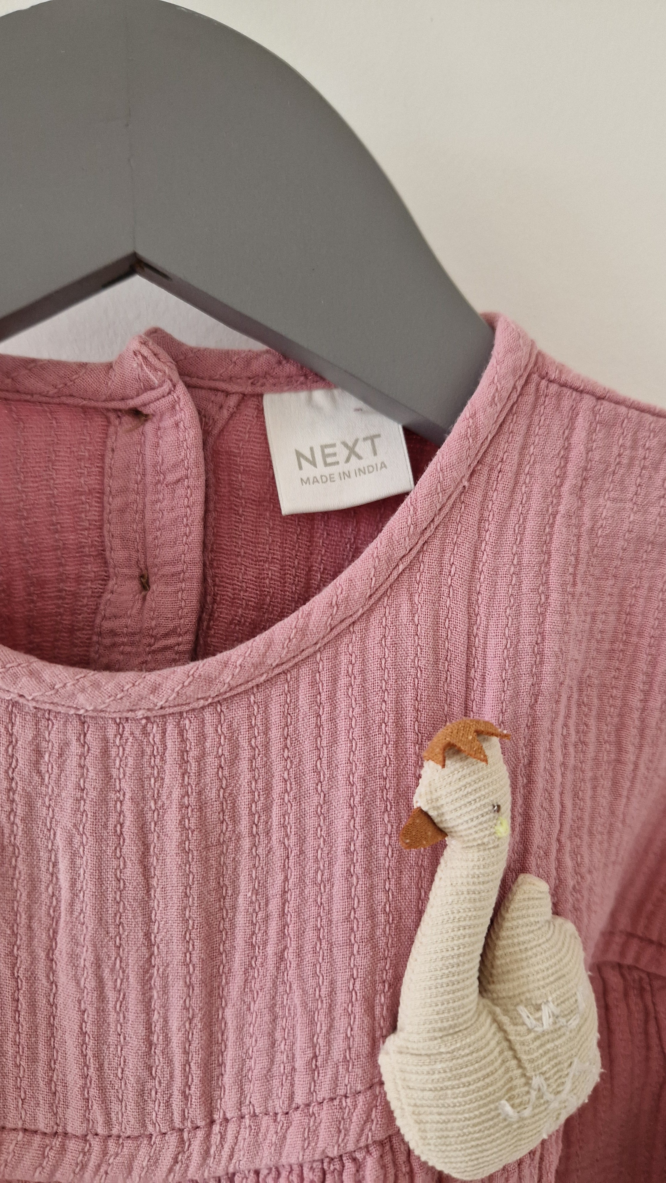 Robe courte Next. 📏 Taille étiquette : 9/12 mois - 80 cm. 🌈 Motif, couleur : Rose mousseline, et un Cygne en... En savoir plus