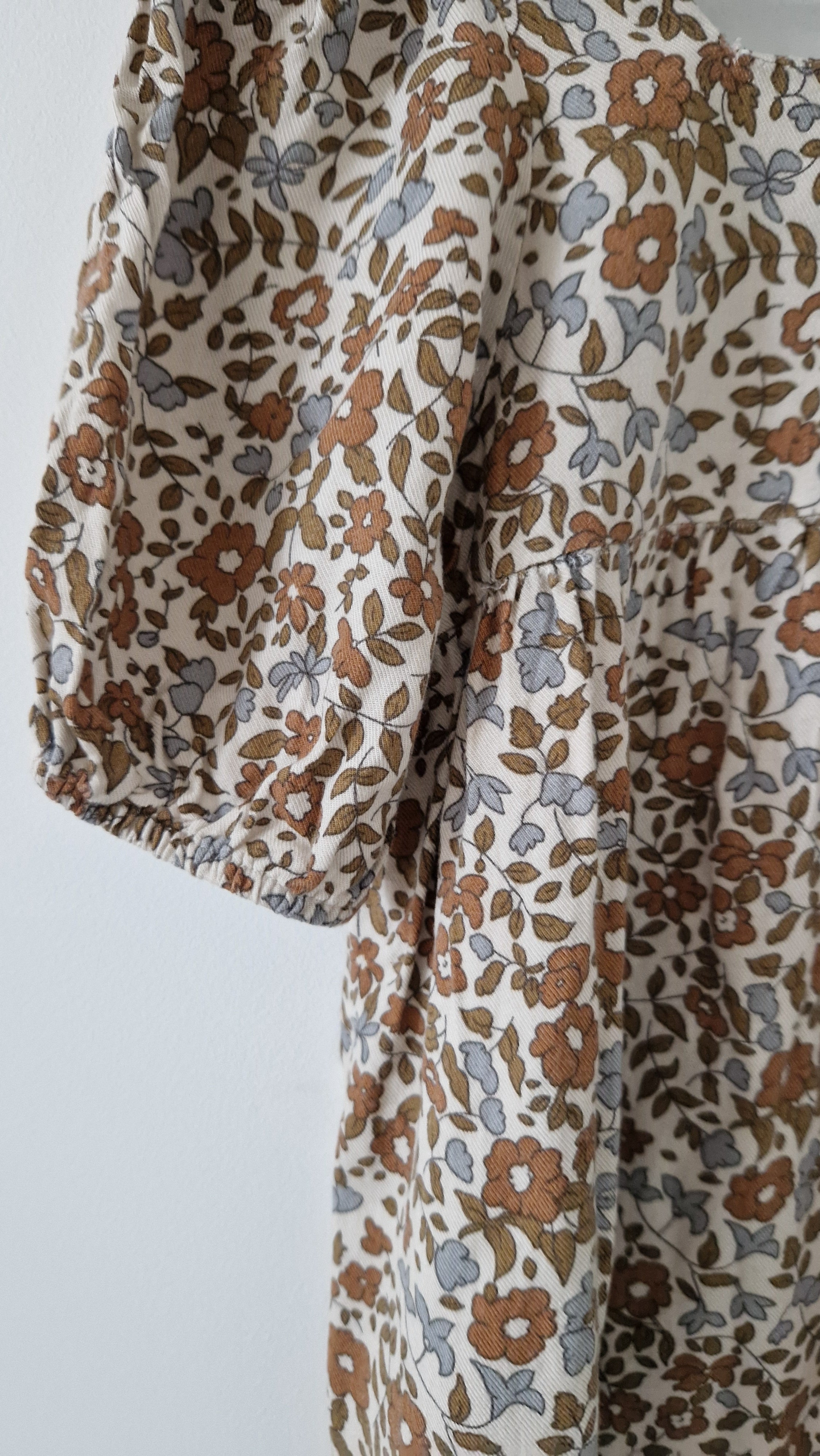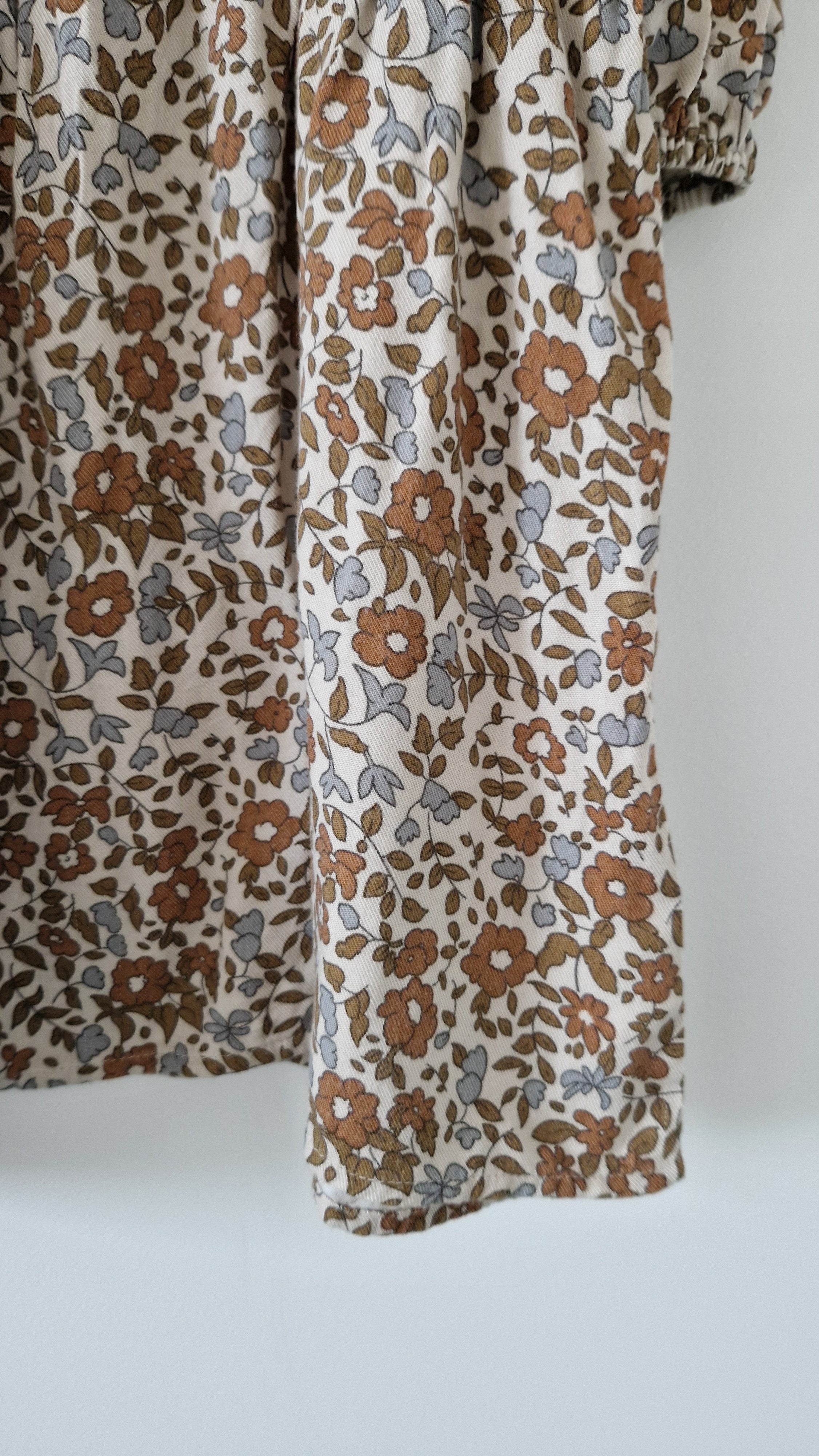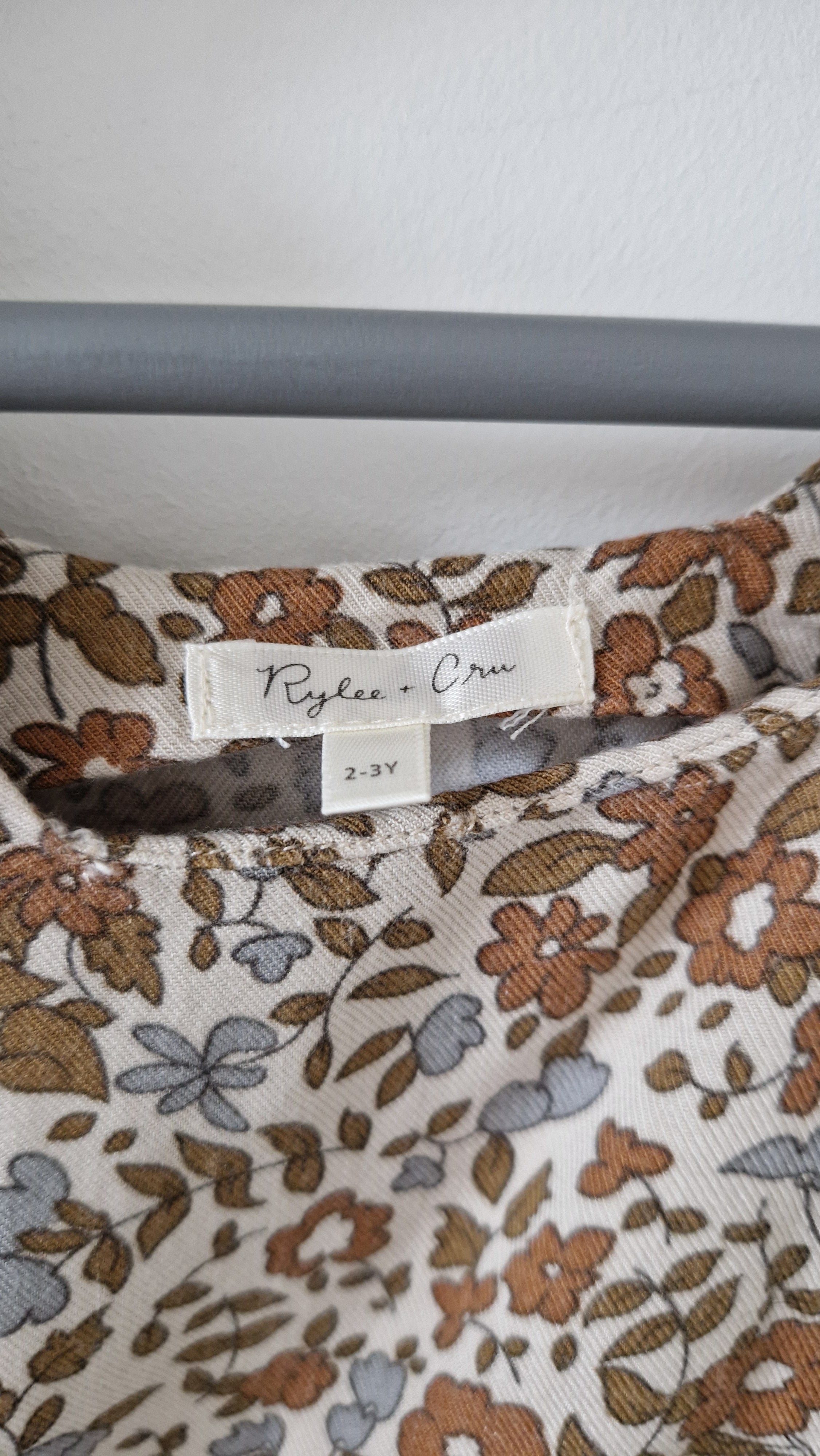 Robe courte Rylee + Cru. 📏 Taille étiquette : 2/3 ans. 🌈 Motif, couleur : Crème motif fleuri marron bleu. 🧬 Matière : 100% Viscose.... En savoir plus