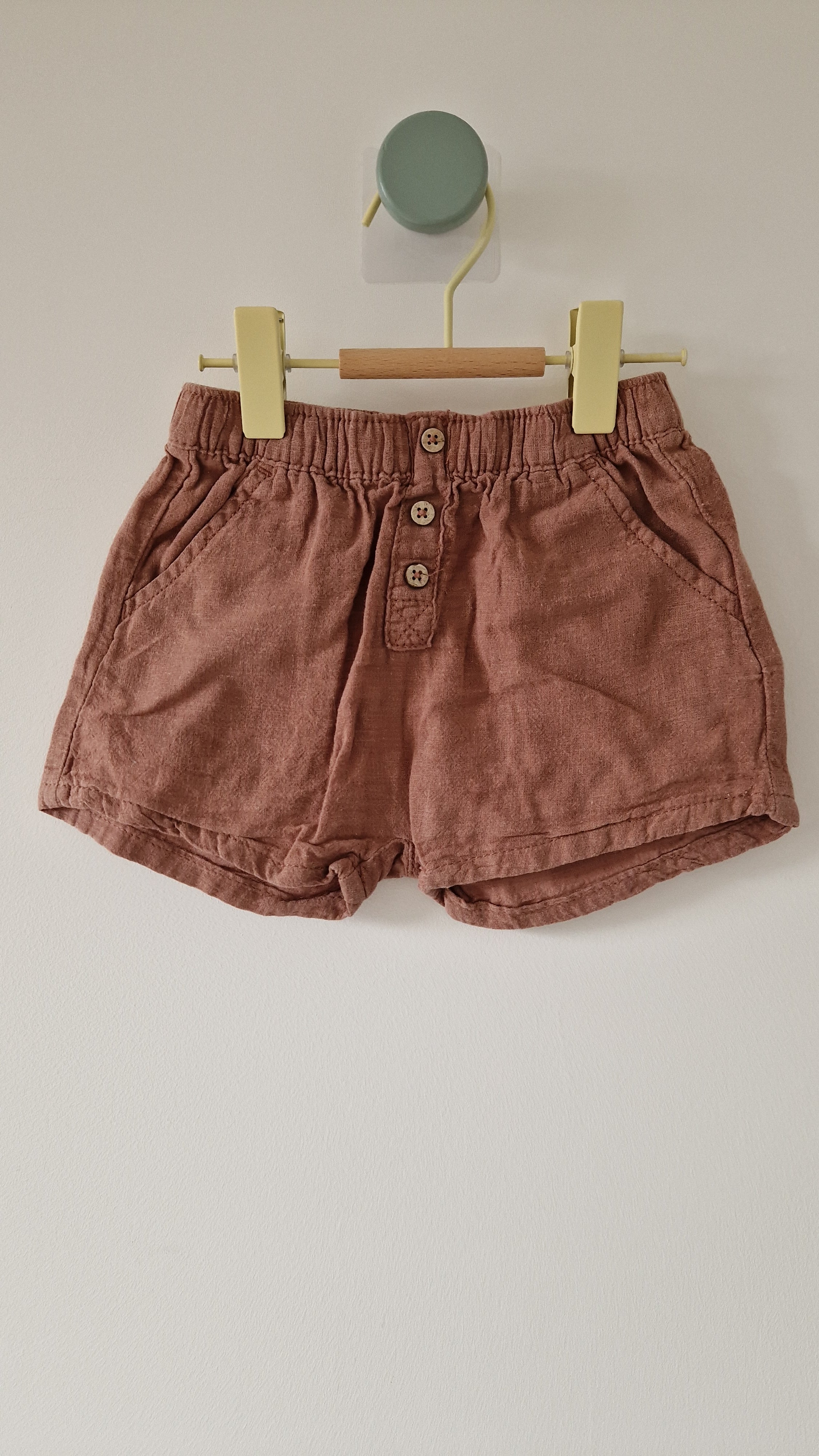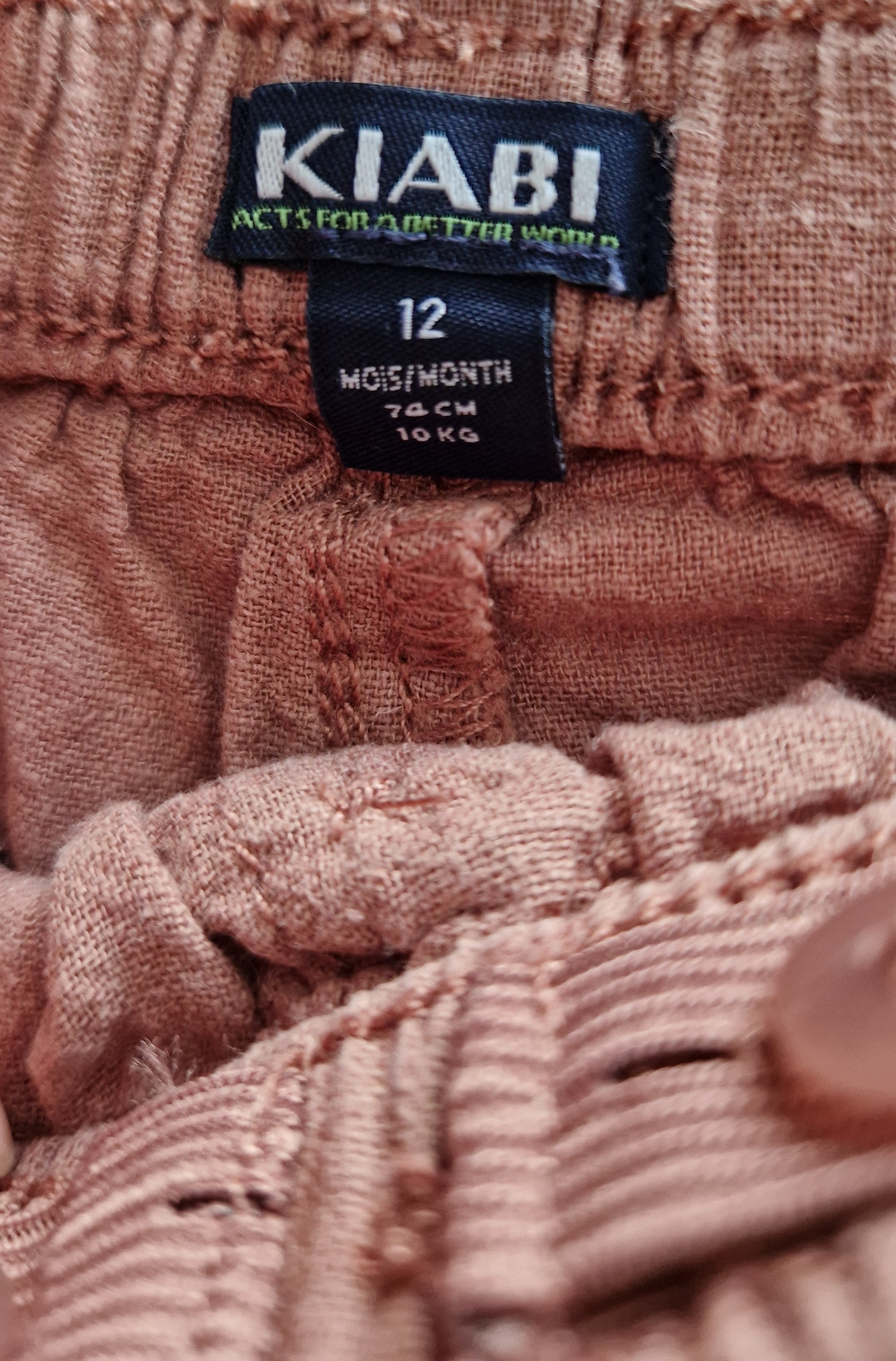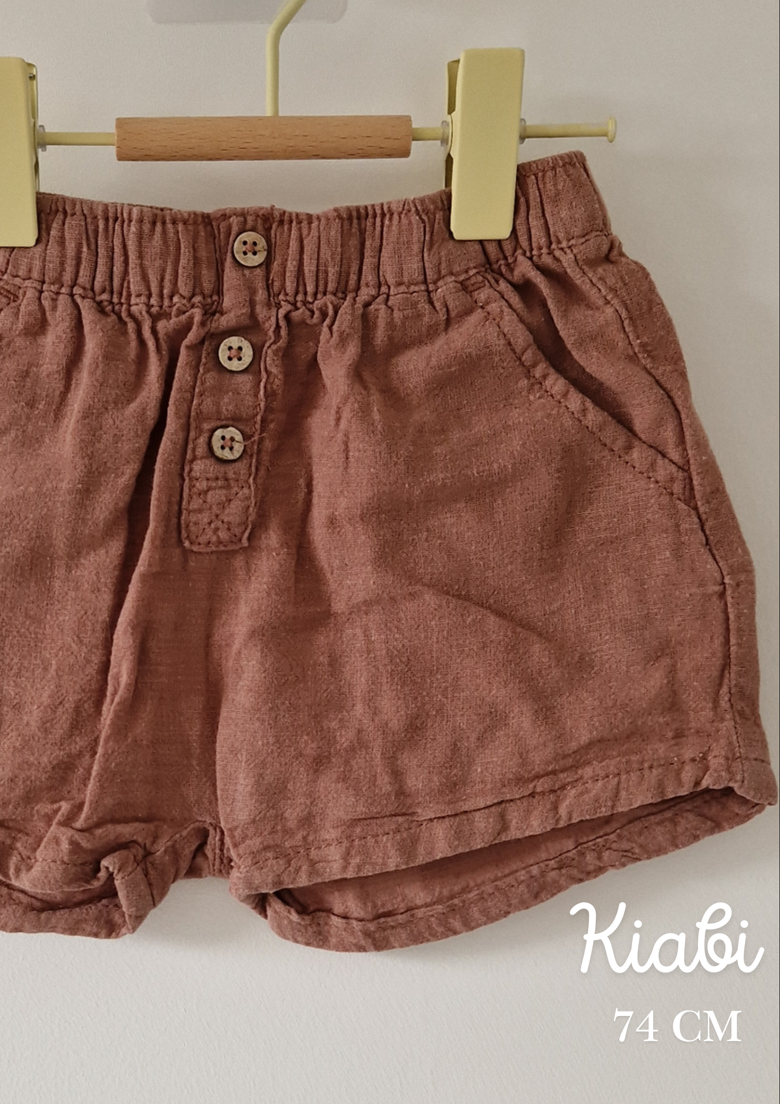 Short Kiabi. 📏 Taille étiquette : 12 mois - 74 cm. 🌈 Motif, couleur : Marron, aspect lin. 🧬 Matière : Pas d'étiquette.... En savoir plus