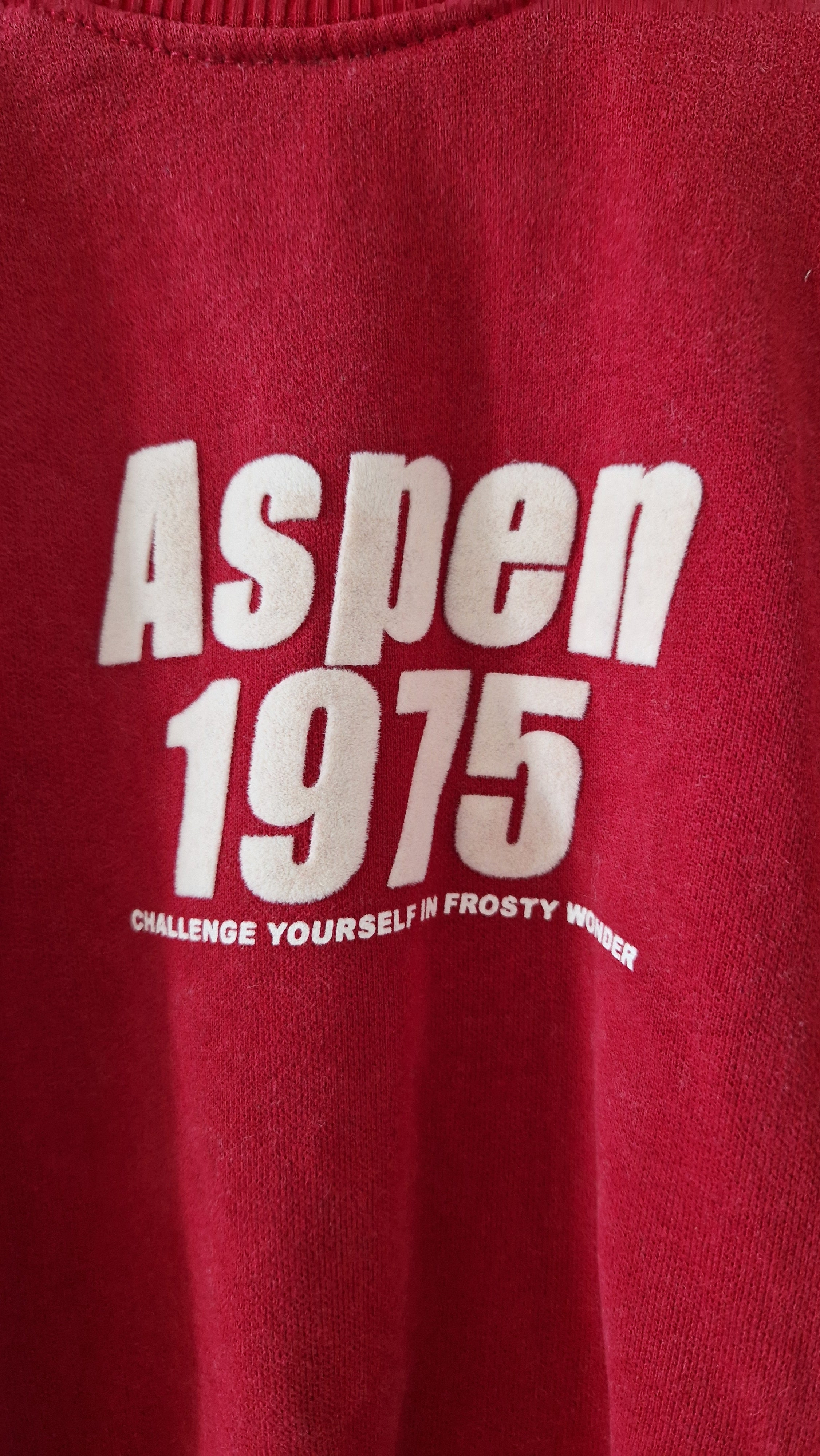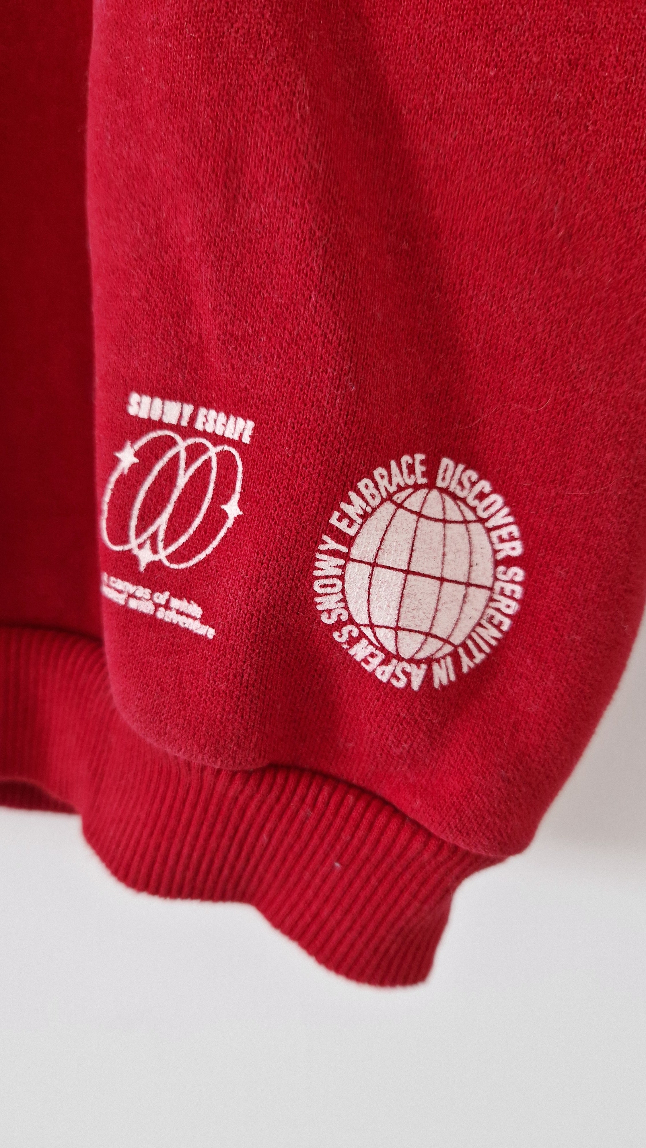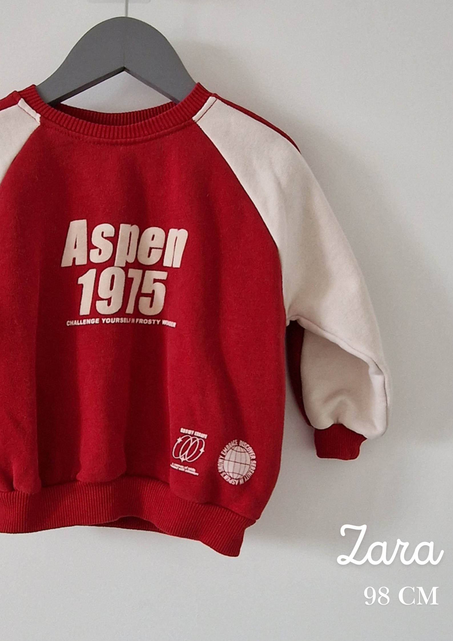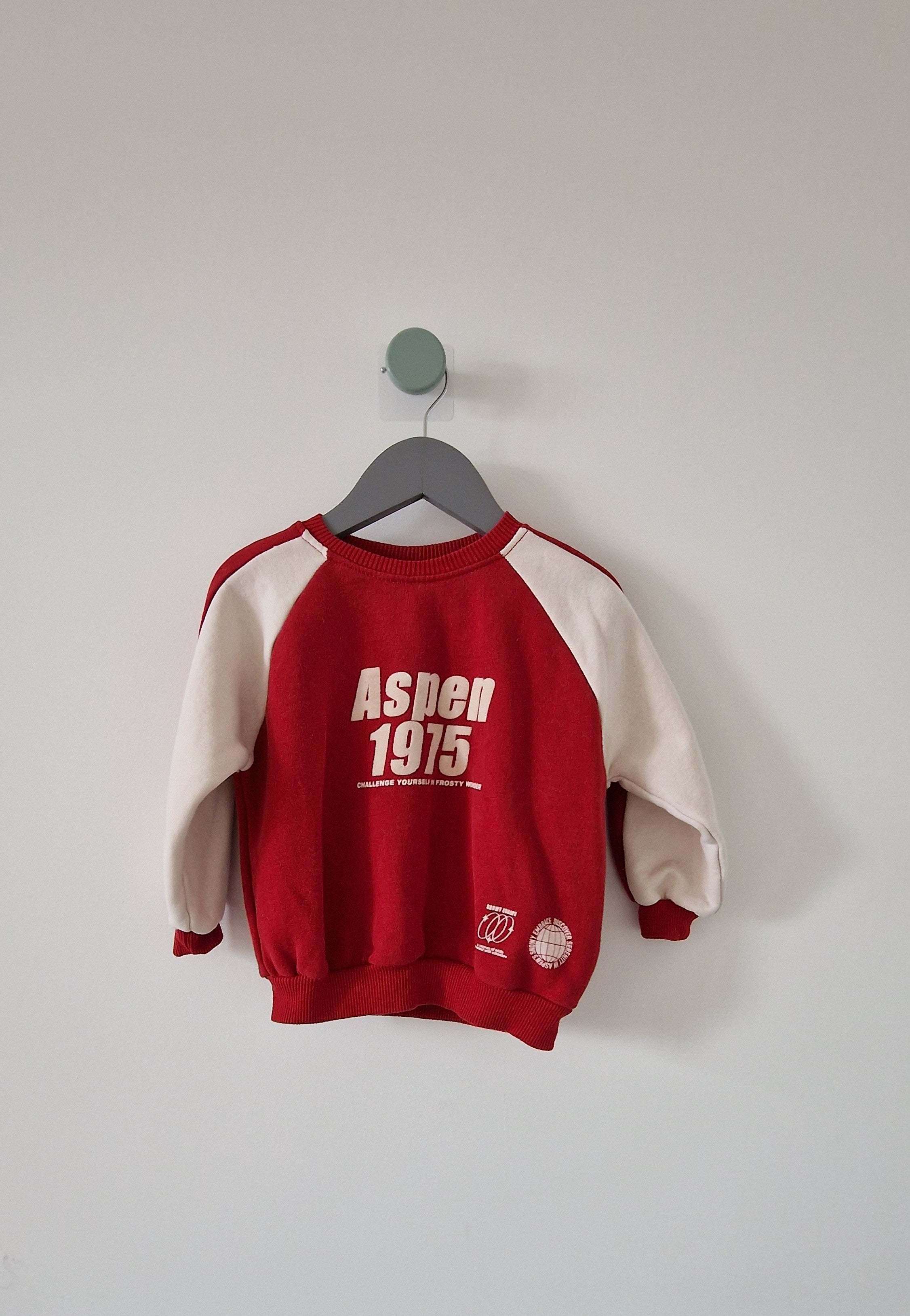 Sweat Zara. 📏 Taille étiquette : 3 ans - 98 cm 🌈 Motif, couleur : Rouge imprimé 'Aspen 1975'. 🧬 Matière :... En savoir plus