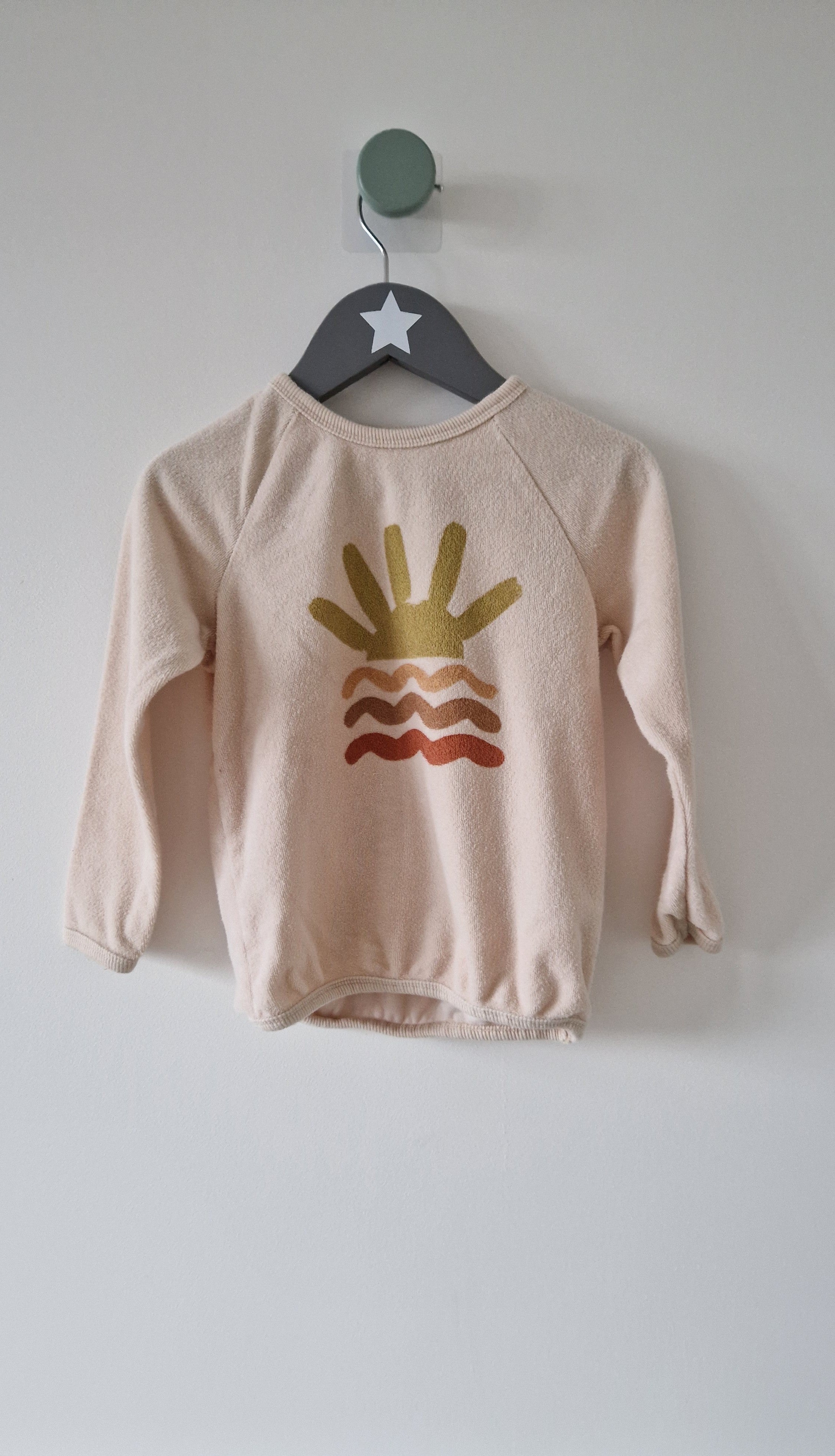 T-shirt épais manches longues H&M. 📏 Taille étiquette : 2 ans - 92 cm. 🌈 Motif, couleur : Éponge crème rosé motif coloré "soleil". 🧬 Matière :... En savoir plus