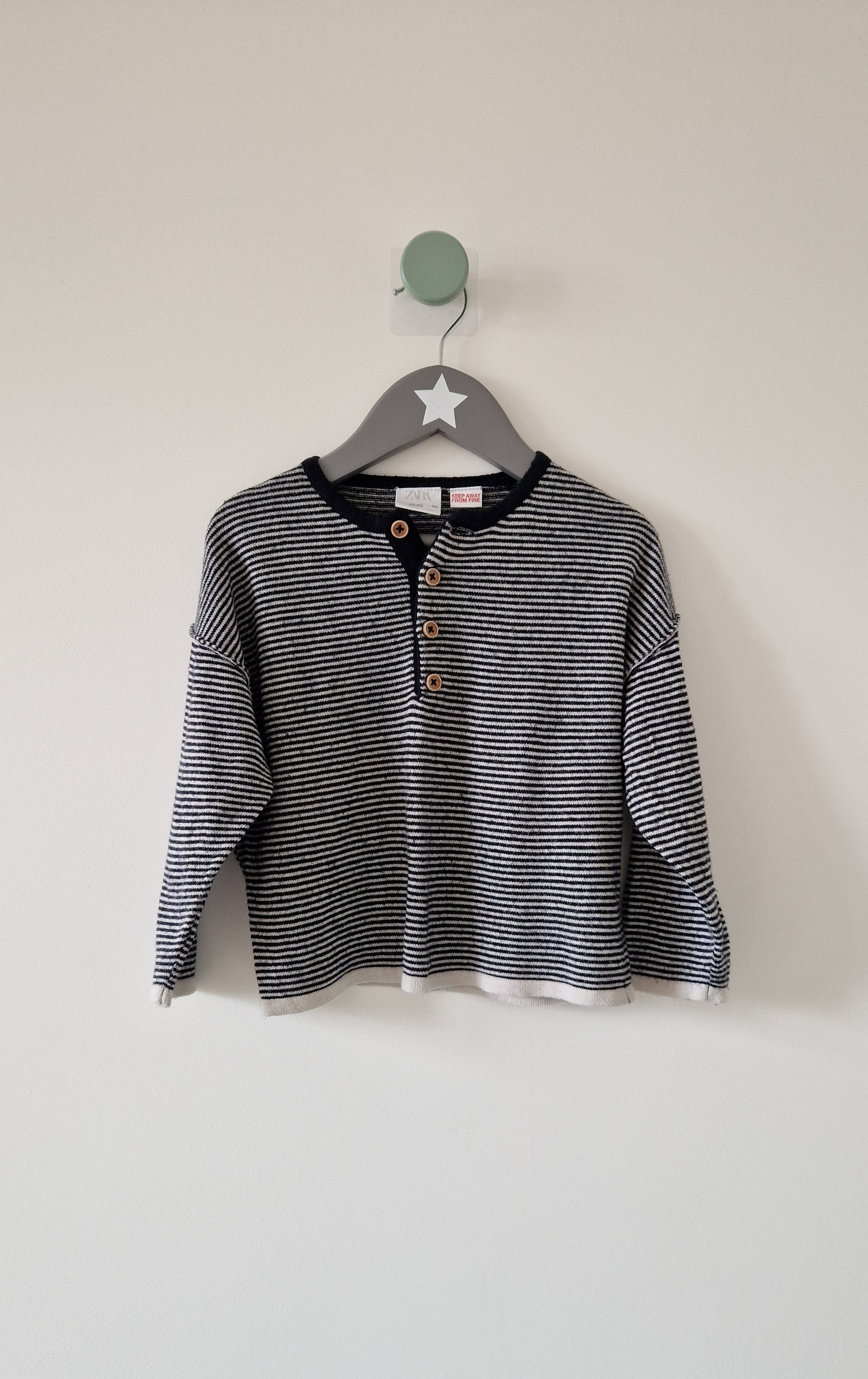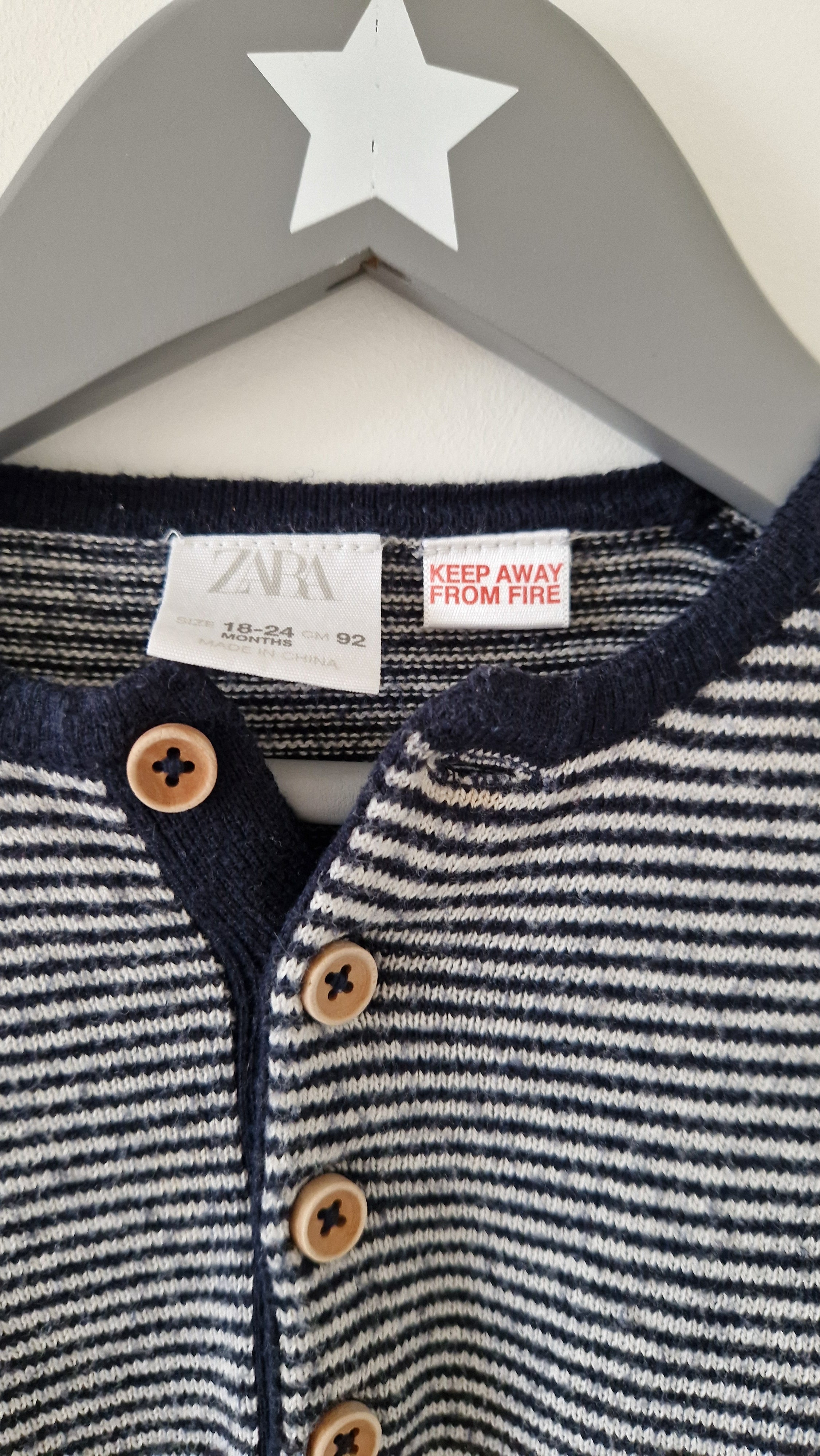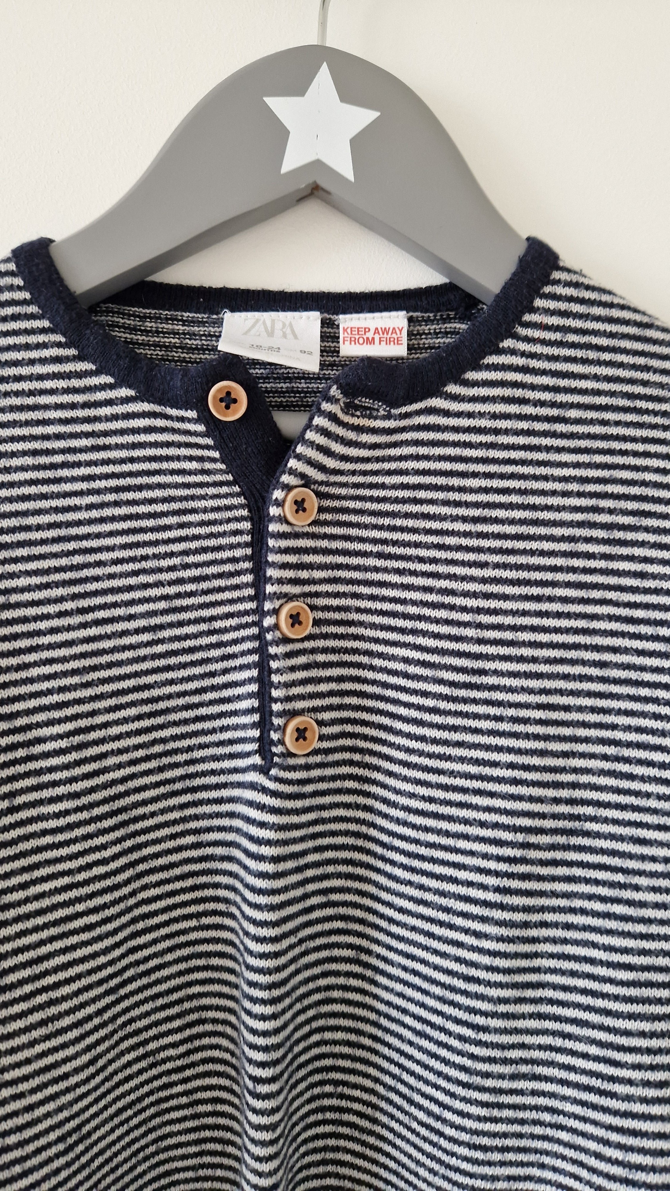 T-shirt manches longues, col rond, ouverture avec boutons Zara. 📏 Taille étiquette : 18/24 mois - 92 cm. 🌈 Motif, couleur :... En savoir plus
